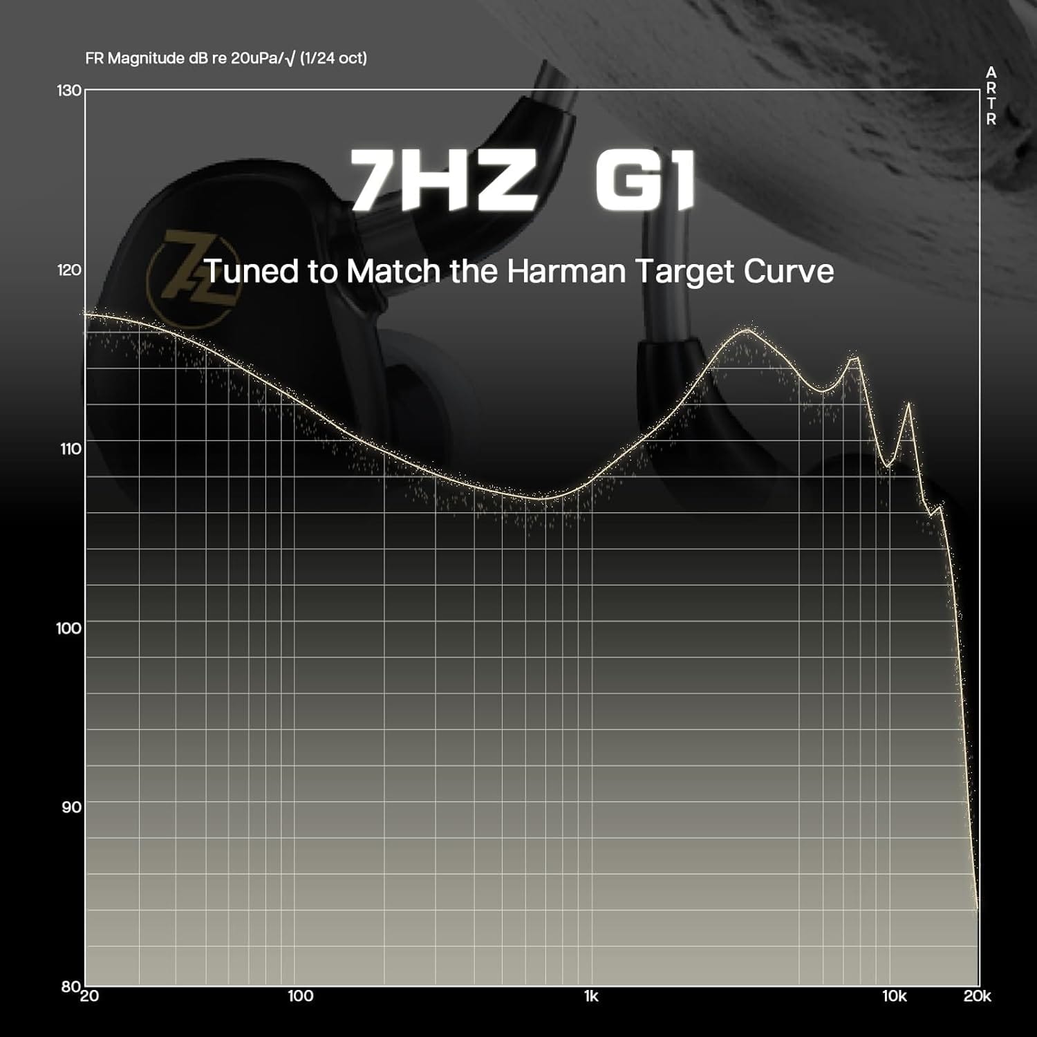 - The 7HZ G1 10mm Dynamic Driver In-Ear Monitor is a high-performance audio device designed for audiophiles and gamers alike. Featuring a dual-magnetic-circuit and dual-cavity dynamic driver, it delivers superior acoustic performance with deep bass, transparent mids, and crisp highs. Equipped with a premium DLC diaphragm and N52 magnets, the G1 ensures excellent transient response and exceptional high-frequency clarity. Furthermore, its Harman Target Curve tuning guarantees a balanced soundstage and minimal distortion, making it perfect for immersive listening.