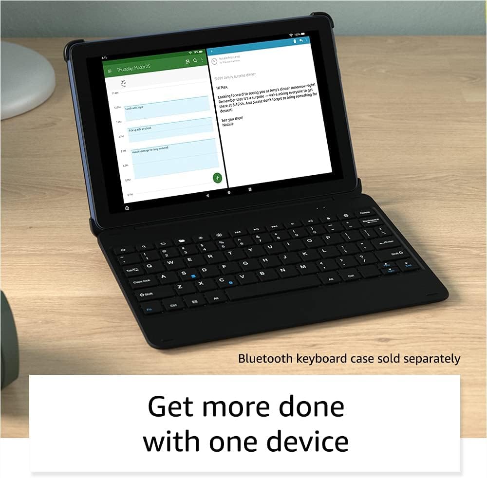 - The Amazon Fire HD 10 Tablet’s features include a 10% brighter display for an immersive movie, gaming, and eBook reading experience. In addition, it is durable yet functional, being up to 1.7 times more durable than an iPad. It also offers 12 hours of reading and entertainment. Equipped with HD cameras on the front and rear, this tablet captures your memories beautifully, as every moment is precious. With 32GB of storage and a 1TB expandable option, you have ample space to store the things you love. Moreover, you can get more things done and enjoy a hands-free experience by just saying “Alexa.” Finally, the easy-to-use child profiles allow you to dedicate screen time and set educational goals, providing a safe and productive environment for your children.