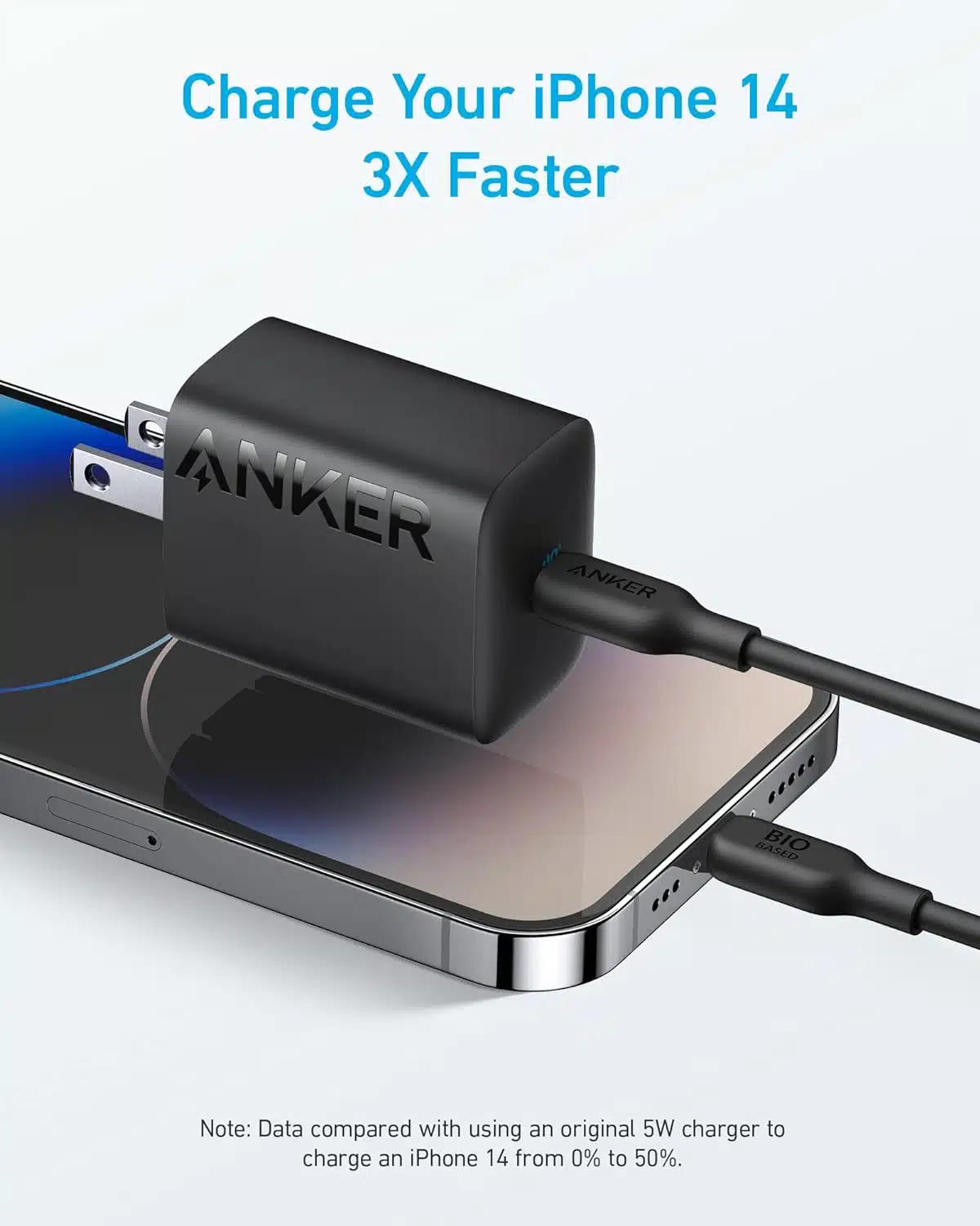 - The Anker 312 30W PD USB-C Charger (A2640N11) is your ultimate solution for fast and efficient charging. With its maximum output of 30W, this charger delivers lightning-fast speeds, ensuring that your devices, including phones, laptops, and more, are powered up in no time. Moreover, it significantly reduces your waiting time, as it can charge an iPhone 14 up to three times faster compared to standard chargers. This means you can spend more time enjoying your device and less time tethered to an outlet.
