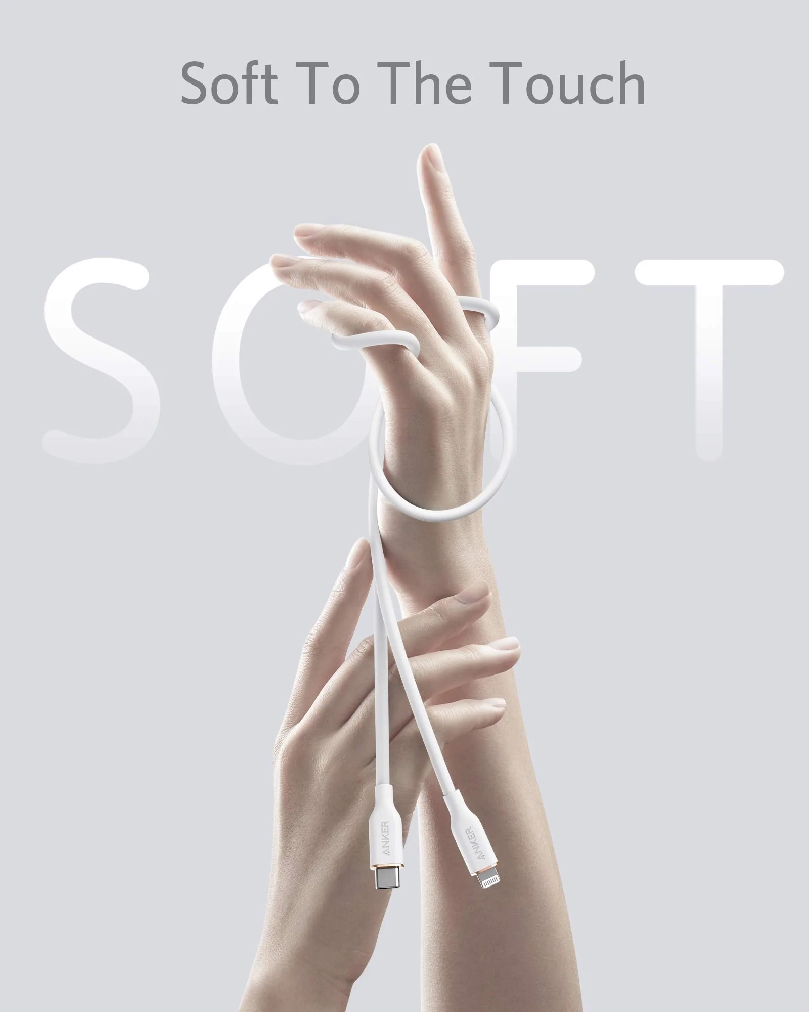- Upgrade your charging experience with the Anker PowerLine IIIFlow, the perfect USB-C to Lightning cable for your Apple devices. Crafted with a unique silicone finish, this cable is incredibly soft to the touch, making it a pleasure to handle every time you charge. Beyond its softness, the PowerLine III Flow is engineered for durability, boasting a remarkable 25,000-bend lifespan. Whether you’re at home, on the go, or traveling, this cable is built to withstand the rigors of daily use.