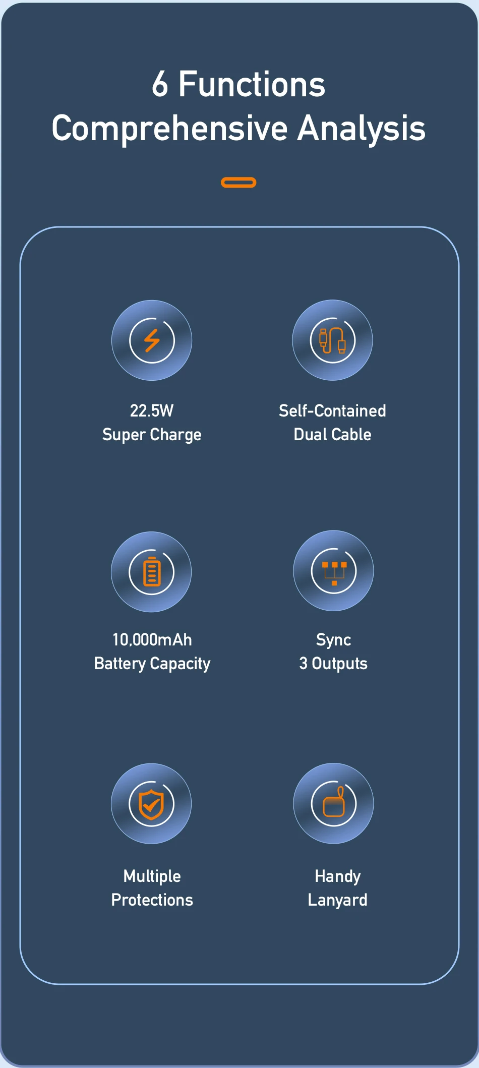 - This power bank is perfect for multitasking with its four output ports: one Type-C input, one Type-C output, two Type-A outputs, and the two built-in cables. You can charge up to four devices simultaneously, making it ideal for group travels or busy households.