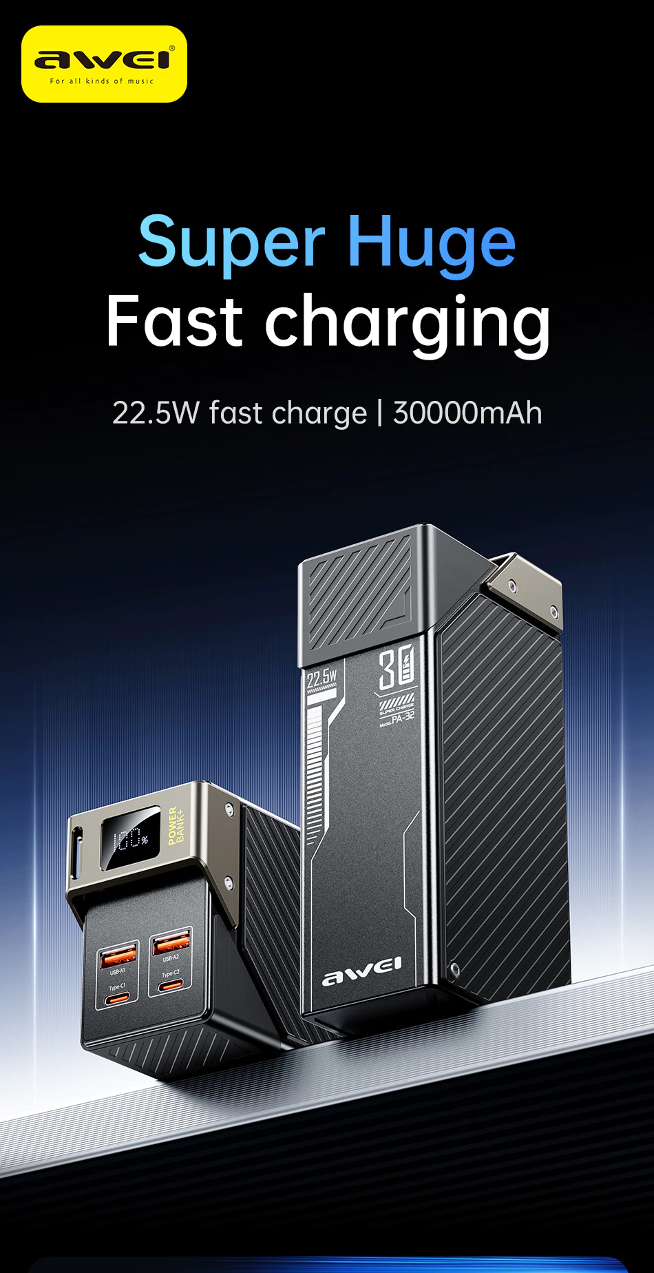 - If you’re tired of running out of battery on the go, the Awei PA32 30000mAh power bank is the ultimate solution. Now available at an unbeatable price in BD, this high-capacity power bank ensures your devices are always ready when you need them most.