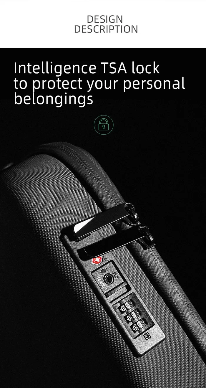 • Moreover, the anti-theft TSA 007 lock is internationally accepted, providing peace of mind during your travels. The overhead zipper allows the bag compartment to open fully flat at 180 degrees, facilitating easy access to your belongings. With ergonomic airflow design, this backpack prevents heat trap, ensuring comfort during prolonged use.