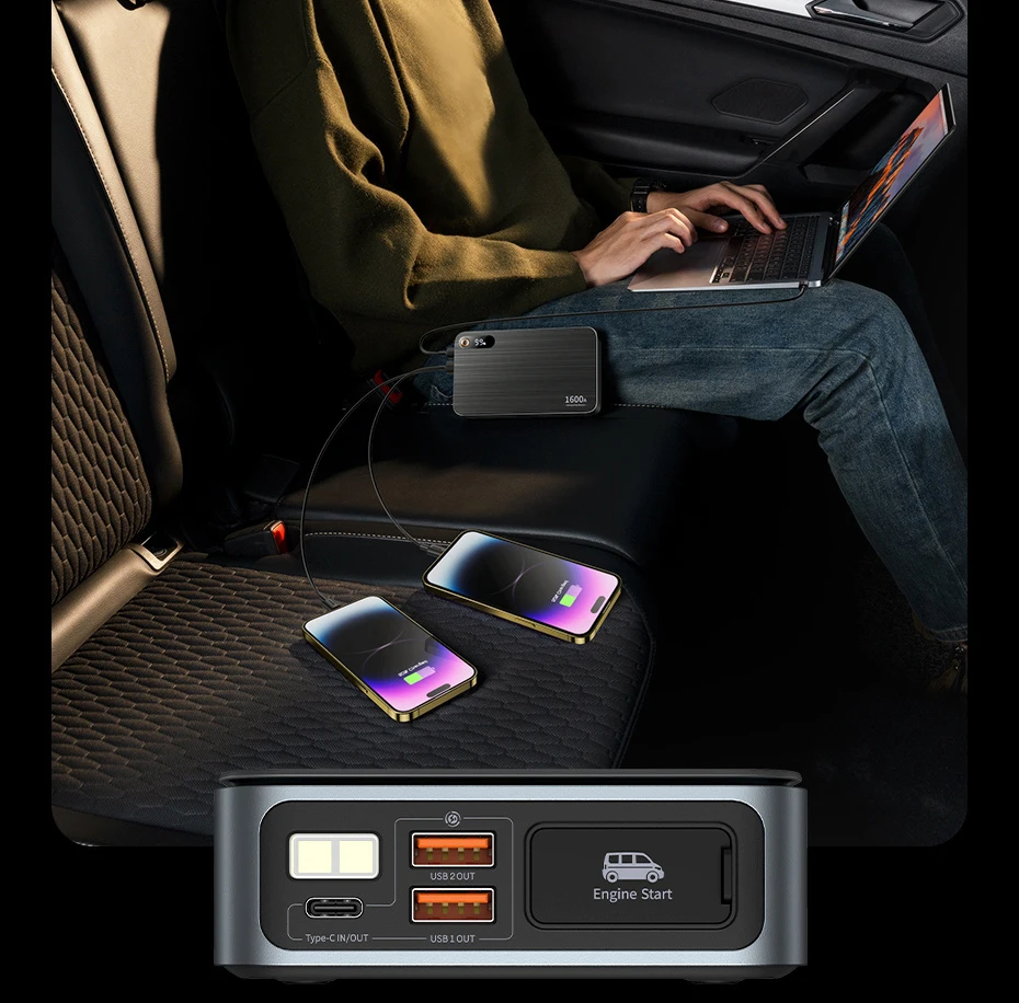 Beyond Jump Starting:The Baseus Super Energy Pro+ is much more than just a jump starter. It also functions as a powerful 16000mAh/59.2Wh portable power bank. This means you can use it to charge your smartphone, tablet, laptop, or other electronic devices on the go. Additionally, it features a 65W PD (Power Delivery) Type-C input and output, allowing you to fast charge compatible devices at blazing speeds.