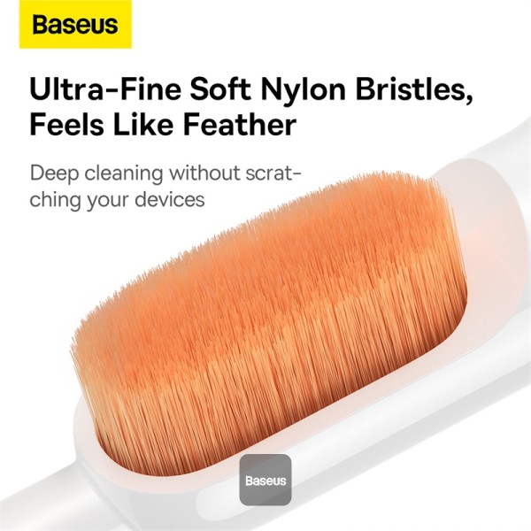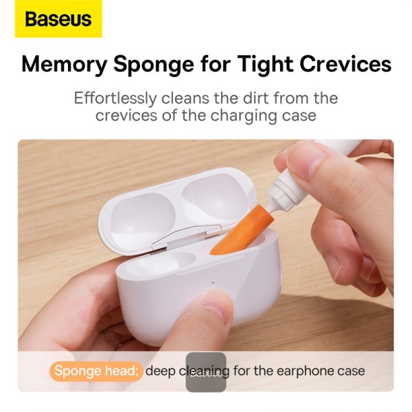 - With its dual-brush design, you can switch between a soft brush for delicate dust removal and a sponge brush for deep cleaning. The sponge tip reaches deep into your earphone charging case, ensuring every corner is thoroughly cleaned. Whether it’s dust stuck in the crevices or grime on the sound outlets, the Baseus Cleaning Brush handles it with ease.