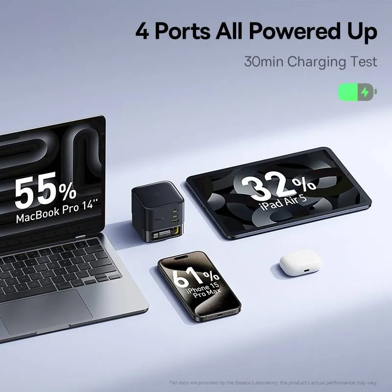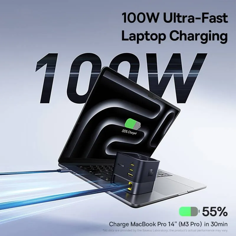 - The Baseus Nomos 100W GaN Desktop ChargingStation also features universal compatibility, supporting a wide range of gadgets including the latest iPhone 14, iPads, MacBooks, Android smartphones, and USB-C-enabled devices.