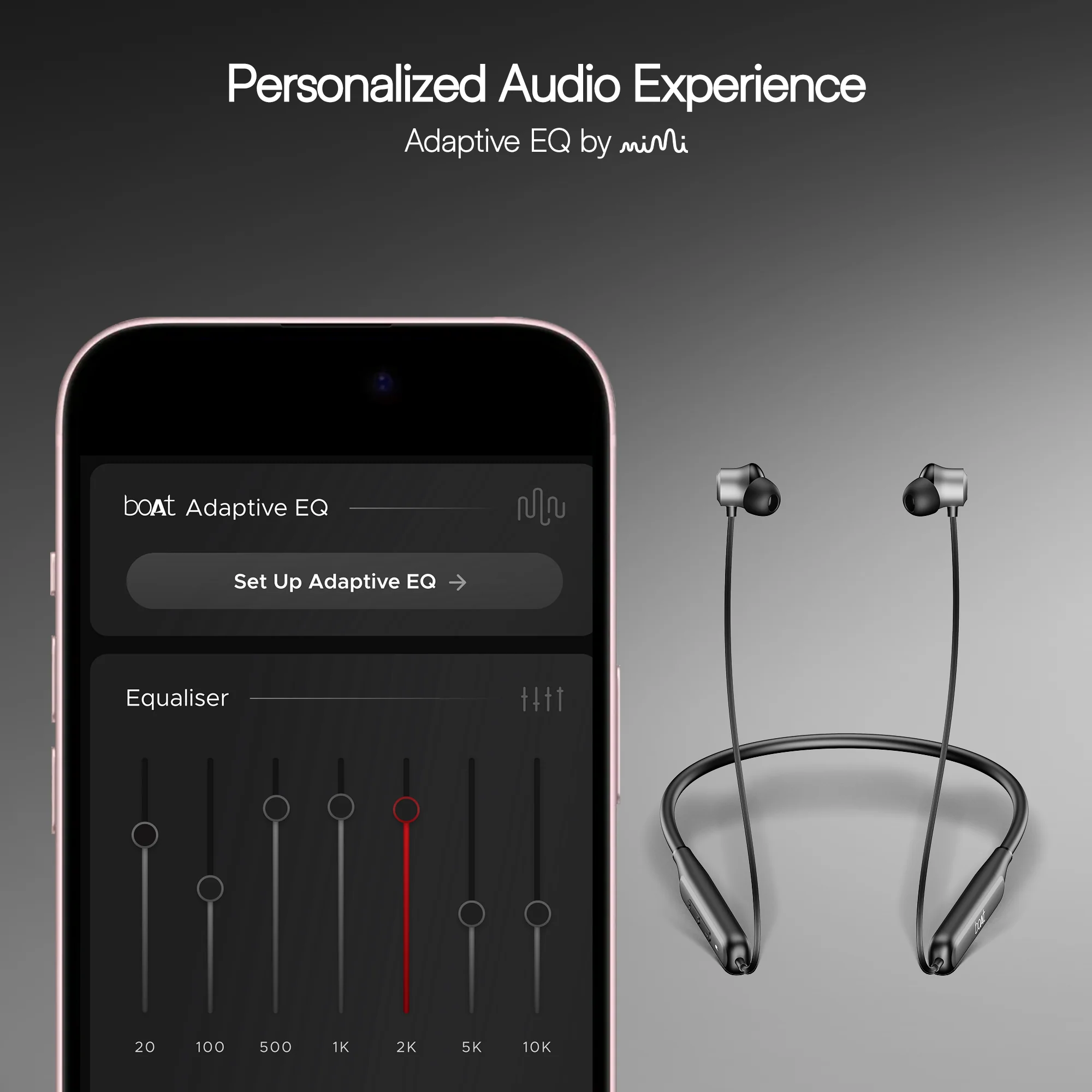 - Additionally, the boAt Adaptive EQ by Mimi Technologies customizes your audio profile based on your hearing ability, ensuring every beat matches your preference. Simply create your hearing profile in the app and experience sound like never before.