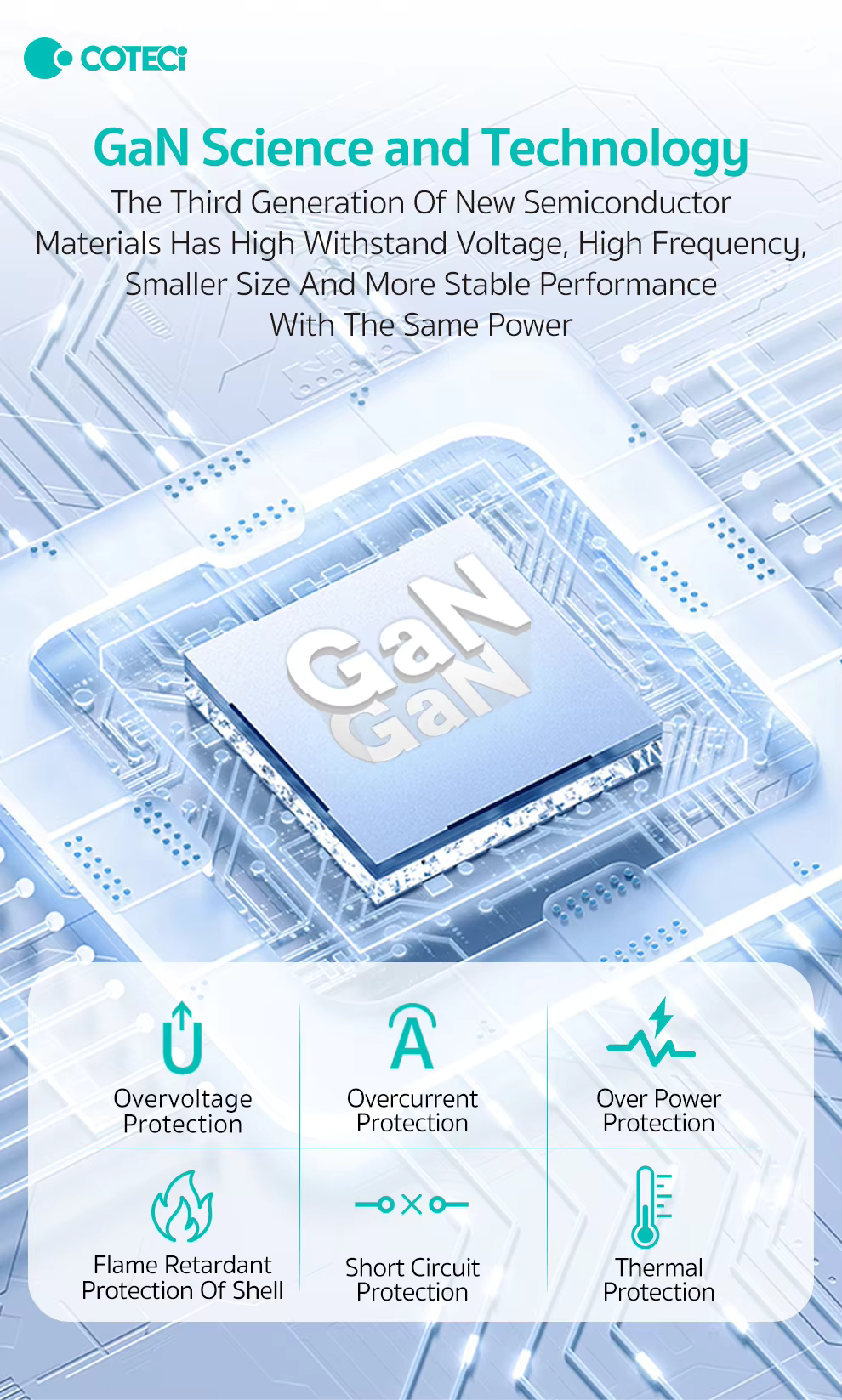 - Crafted from high-quality GaN material, this charger is not only lightweight and compact but also highly durable. Additionally, built-in short circuit protection guarantees safe operation, preventing damage to your valuable gadgets.