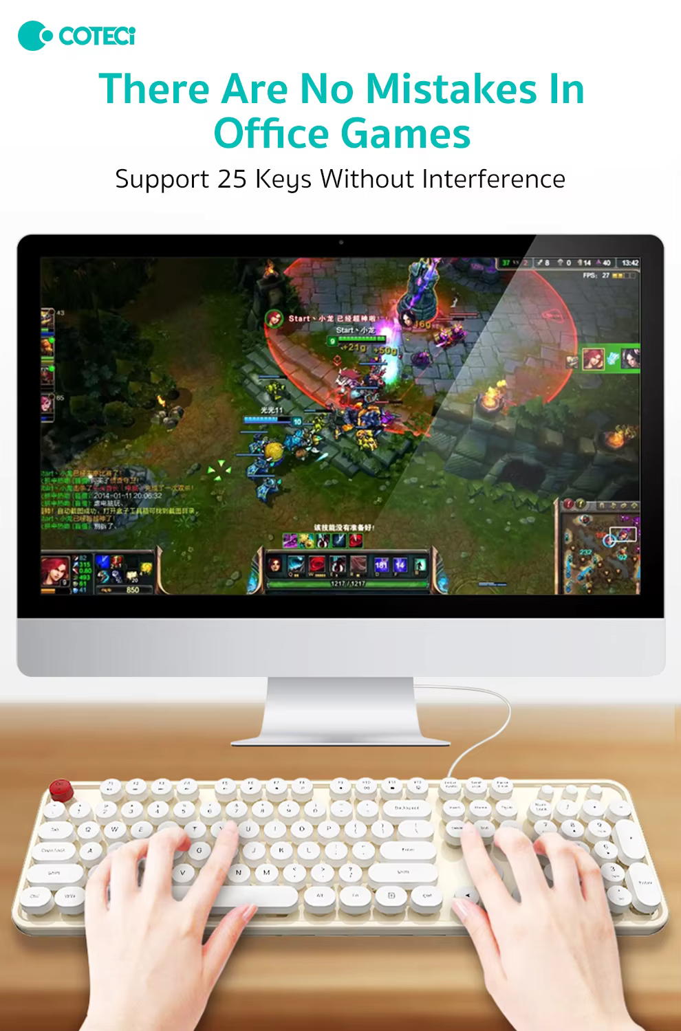 - The Coteci 84018 104 Keys WiredKeyboard offers a seamless blend of retro aesthetics and modern functionality. Designed for users who appreciate a vintage typewriter look but need modern performance, this keyboard is ideal for both office productivity and everyday computing.