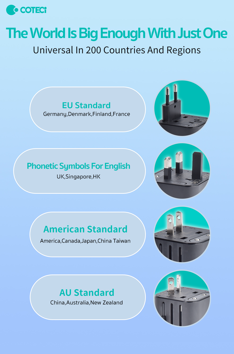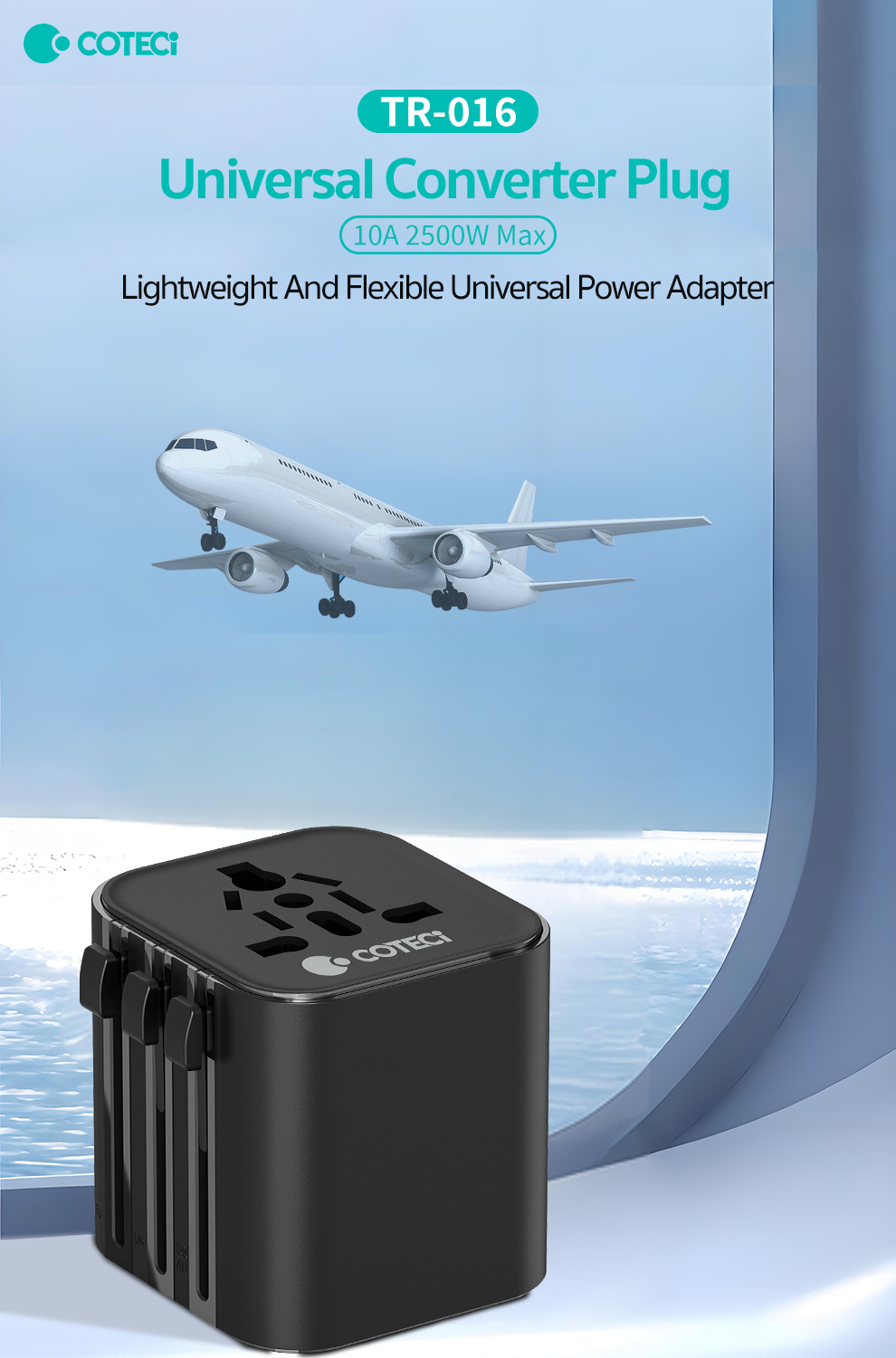 - Traveling across borders often comes with one common challenge—plug compatibility. The COTECi Universal Travel ConverterPlug is designed to solve that exact problem. This high-quality travel adapter allows you to connect your devices in over 200+ countries, including the US, UK, EU, and AU, making it ideal for frequent travelers, digital nomads, and business professionals.