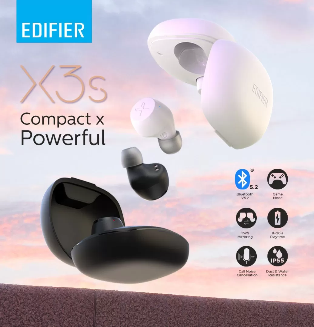 - Looking for compact earbuds that deliver exceptional audio and long-lasting performance? The EdifierX3S True Wireless Earbuds combine cutting-edge features with everyday convenience. Weighing just 44g with a pocket-sized charging case, these earbuds are perfect for daily use and easy portability. A single charge offers up to 8 hours of music playback, and with the case, you can enjoy up to 28 hours on the go.