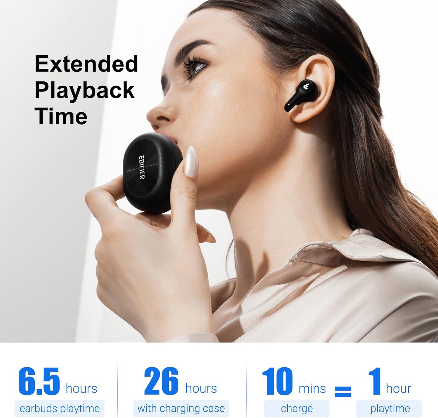 - When it comes to battery life, the EdifierX5 Lite doesn’t disappoint. It offers up to 6.5 hours of continuous playback, and with the charging case, you get a total of 26 hours. Moreover, a quick 10-minute USB-C fast charge provides an extra hour of playback—perfect for those always on the go.
