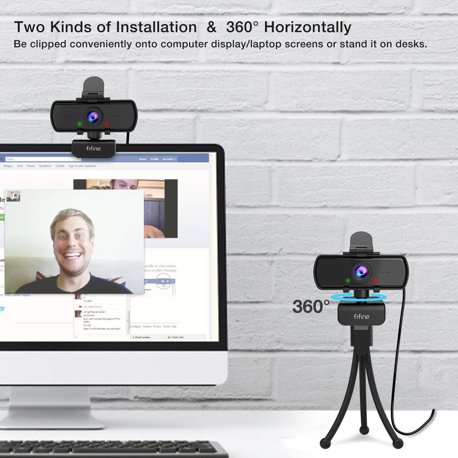 - Additionally, the flexible tripod stand included in the box makes positioning the camera easier than ever. Its 360-degree rotatable mount ensures you get the perfect angle without moving your entire setup. The sturdy clamp keeps it securely attached to your laptop or monitor, even during movement.