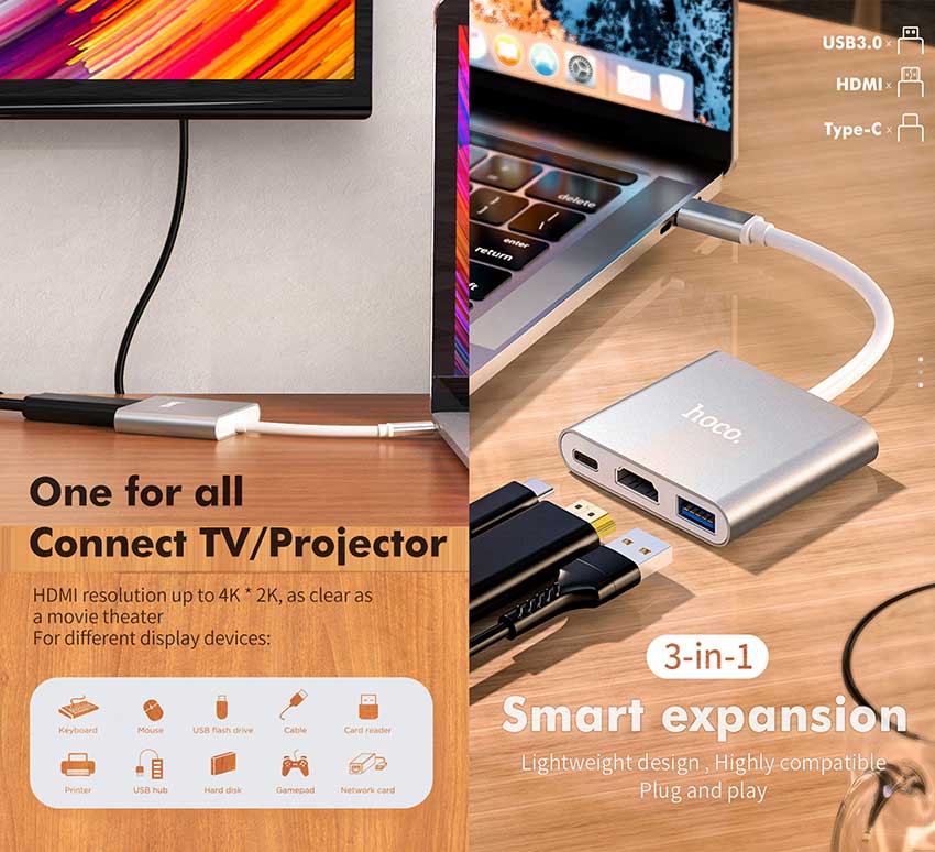Buy Hoco HB14 3 in 1 Type C Hub AdapterĀ Online At the Best Price In Bangladesh At GearsWheel