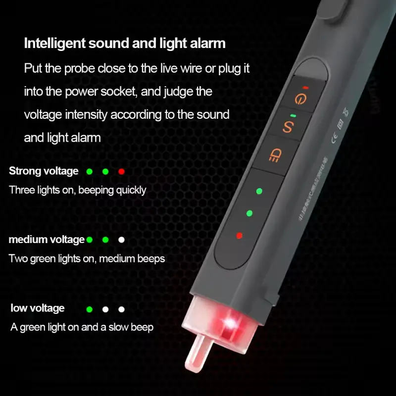 - The JIMIHOME JM-G2704 Non-Contact Electrical Test Pen is an essential tool for electricians, technicians, and DIY enthusiasts who value safety, precision, and ease of use. Designed with advanced induction detection technology, it allows you to accurately identify live wires, detect breakpoints, and distinguish between zero and fire lines without direct contact—ensuring maximum safety during electrical work.