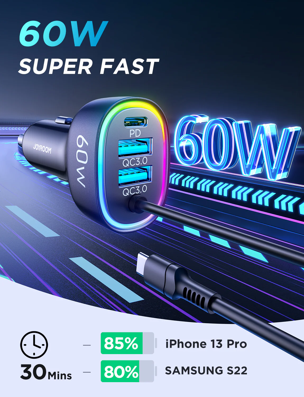 Buy Joyroom JR-CL20 4-in-1 Car Charger with Lightning Cable 57W Online At the Best Price In Bangladesh At GearsWheel