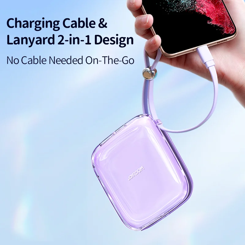 - Convenient 2-in-1 Design: The built-in Type-C cable doubles as a lanyard, making it easy to carry while charging. This thoughtful design eliminates the hassle of carrying extra cables.