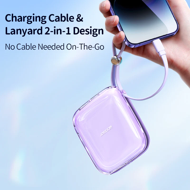 - Compact & Lightweight Design: Weighing just a few grams, this lightweight power bank fits easily in your bag or pocket. Its lanyard-style fast charging cable makes it even more convenient for travel. Available in white, black, purple, and blue, it suits different styles and preferences.