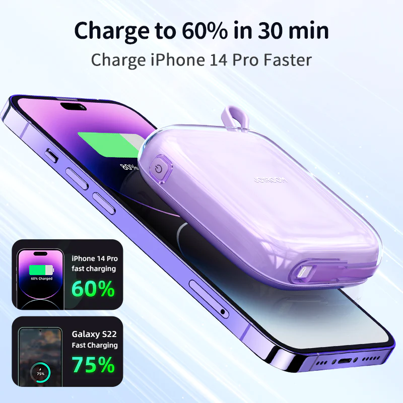 - Massive 10,000mAh Capacity: No more battery anxiety! The JoyroomJR-L003 holds enough power to charge an iPhone 14 Pro about 2.5 times, an iPad Mini 1.5 times, and AirPods up to 13 times. This makes it a reliable travel companion for daily use.