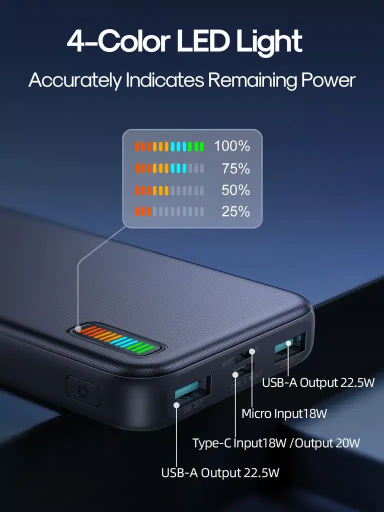 - Fast & Efficient Charging: With 22.5W fast charging, the JR-QP194 delivers 5V=3A max output, allowing you to quickly charge your smartphone, tablet, or wireless earbuds. Whether using the Type-C or USB ports, enjoy a seamless charging experience with minimal downtime.