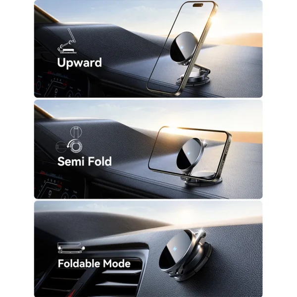 - Built with premium zinc alloy, the JR-ZS408 not only adds style to your dashboard but also stands up to everyday wear and tear. Its dual neodymium magnetic rings ensure your phone stays firmly in place—even on rough roads. Additionally, the foldable and 360° rotatable design gives you complete control over your viewing angle, making navigation and hands-free calls effortless.