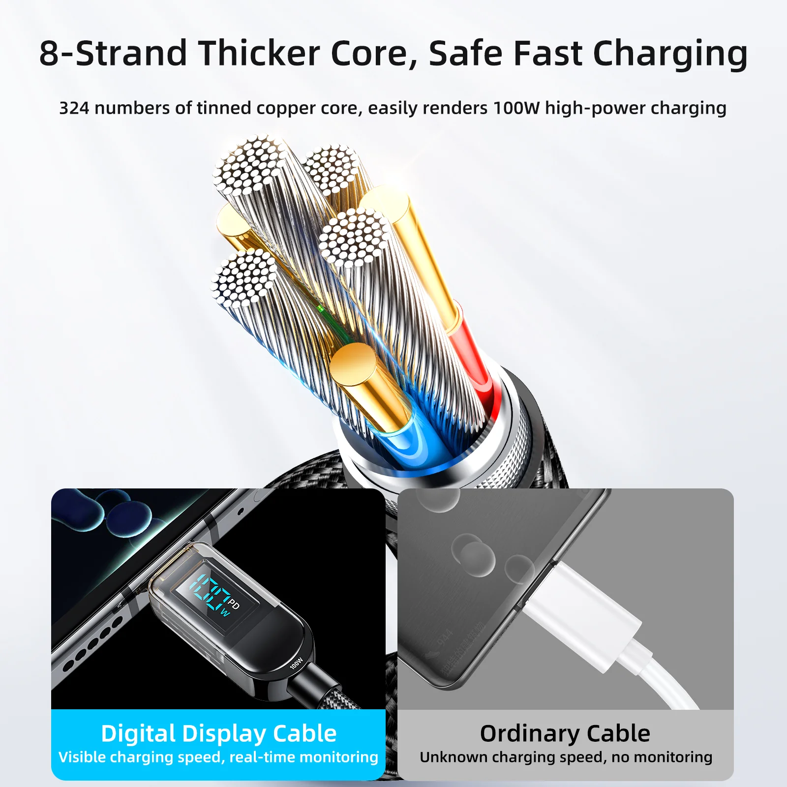 JOYROOM S-CC100A4 100W Digital Display Type-C to Type-C Charging Cable:
