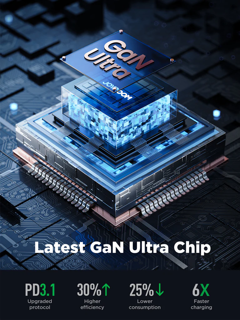 - Advanced GaN Chip for Efficient Charging: Built with GaN semiconductor technology, the Joyroom TCG05 enhances power conversion efficiency while minimizing heat generation. This ensures fast and safe charging for all your gadgets.
