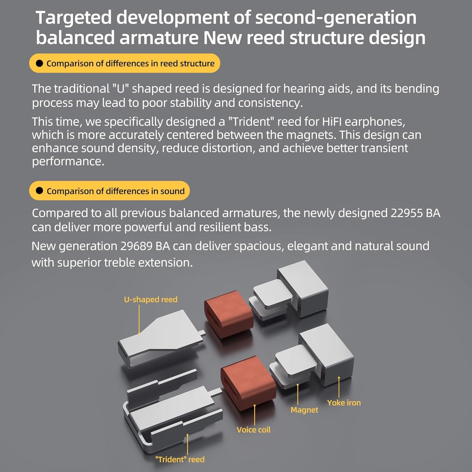 - Choose between basic or tunable options to suit your preferences. The basic version offers balanced and delicate sound, while the tunable version comes with 2 switches for 8-level adjustments, allowing you to fine-tune bass, mids, treble, and ultra-treble effortlessly.