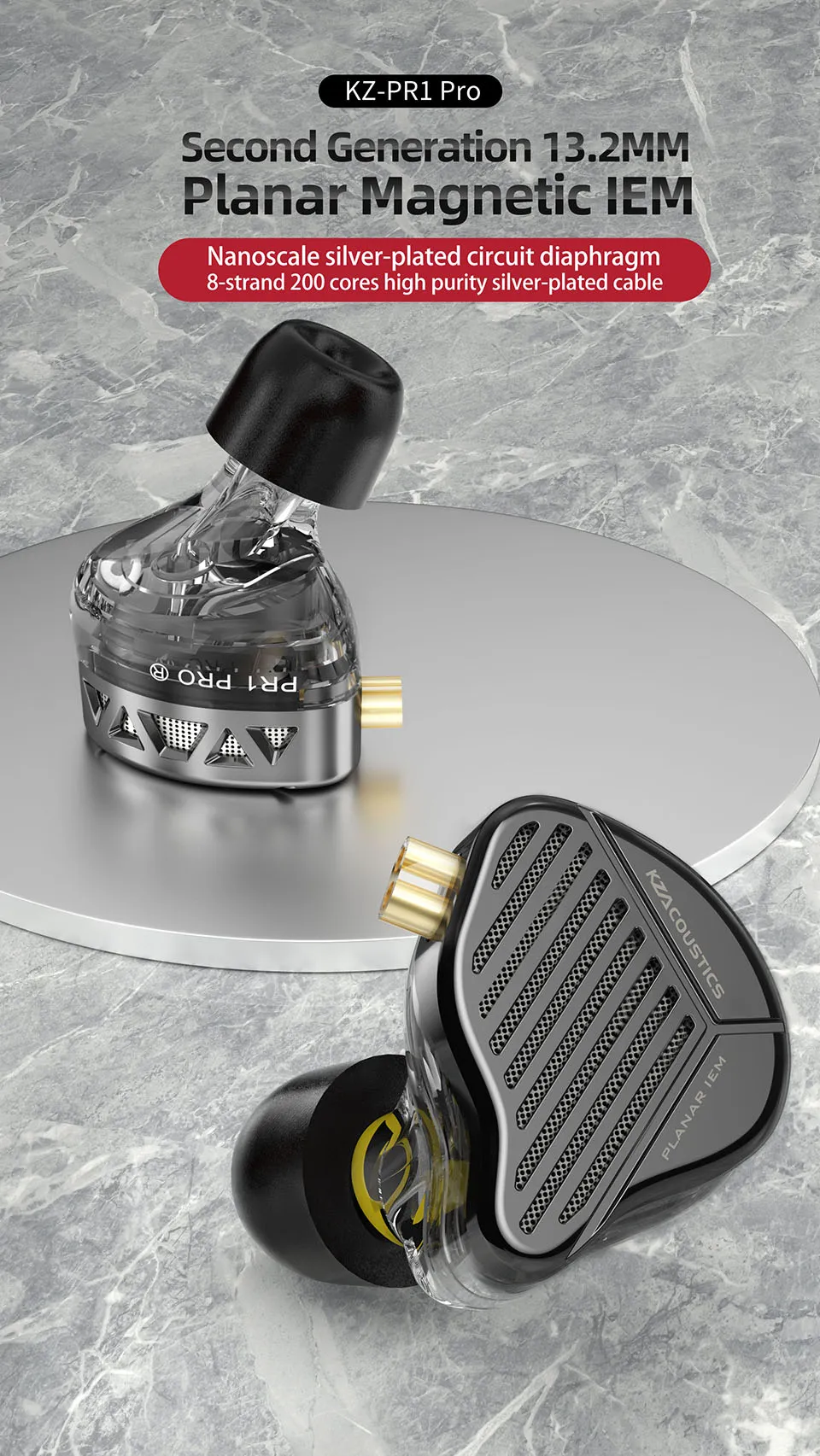 - The KZ PR1 Pro redefines sound quality with its upgraded 13.2mm planar magnetic driver, delivering 50% improved performance for an unparalleled listening experience. These IEM earphones offer outstanding analytical power, producing richer details and superior treble extension, making them perfect for HiFi music enthusiasts.