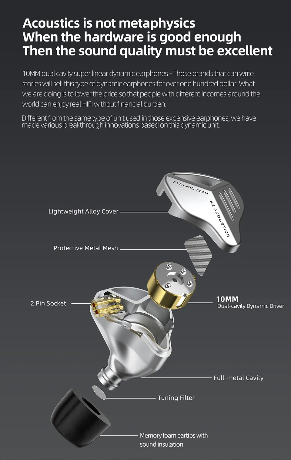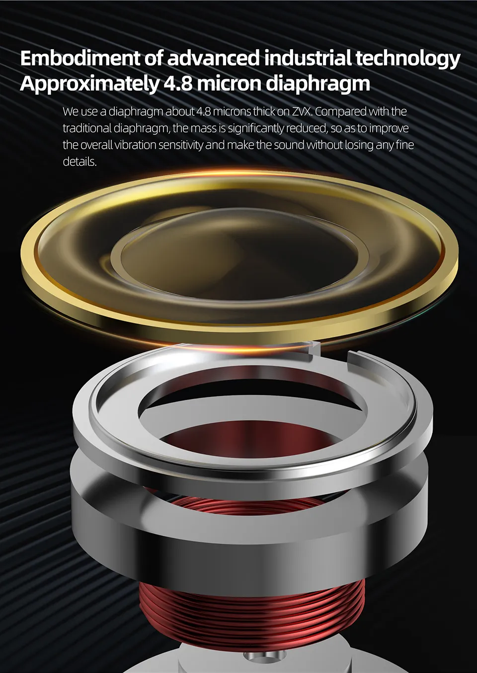 - Experience the unparalleled performance of the KZ ZVX, a top-tier choice in IEM earphones. Equipped with a 10mm dual cavity super linear dynamic driver, these earphones deliver exceptional bass and crystal-clear sound with rich detail. The advanced 4.8-micron diaphragm significantly reduces mass, enhancing vibration sensitivity for a brilliant audio experience.
