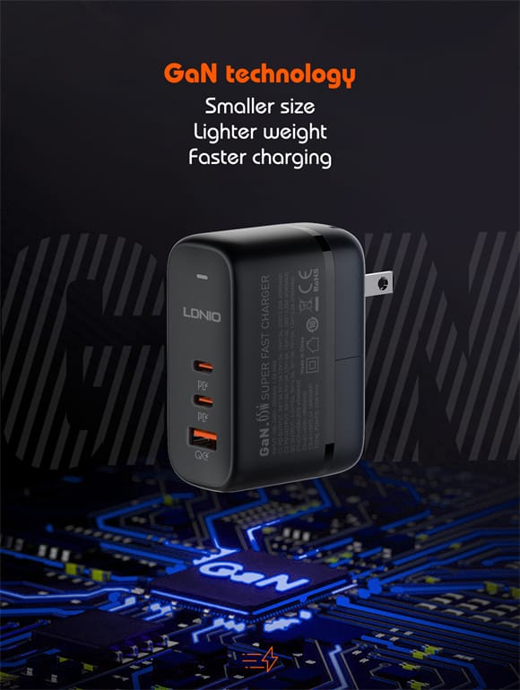 - The LDNIO Q366 65W GaN Super Fast Charger is a powerful and efficient charging solution designed for modern devices. With advanced GaN technology, this charger delivers high-speed charging while maintaining a compact and lightweight design. Whether you’re at home, in the office, or traveling, its universal compatibility makes it the perfect companion.