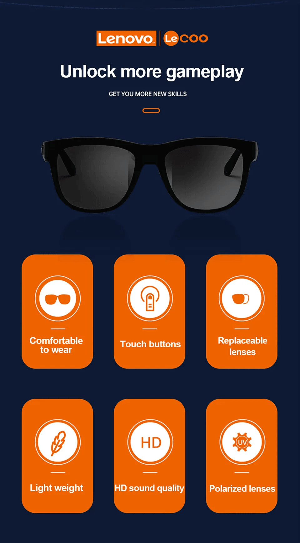 - The Lenovo Lecoo C8 Lite Smart Glasses Headset combines innovation, style, and technology to create the ultimate outdoor companion. Designed for those who seek convenience and elegance, these smart glasses integrate wireless Bluetooth 5.3 technology with built-in earphones, offering a seamless audio experience wherever you go.