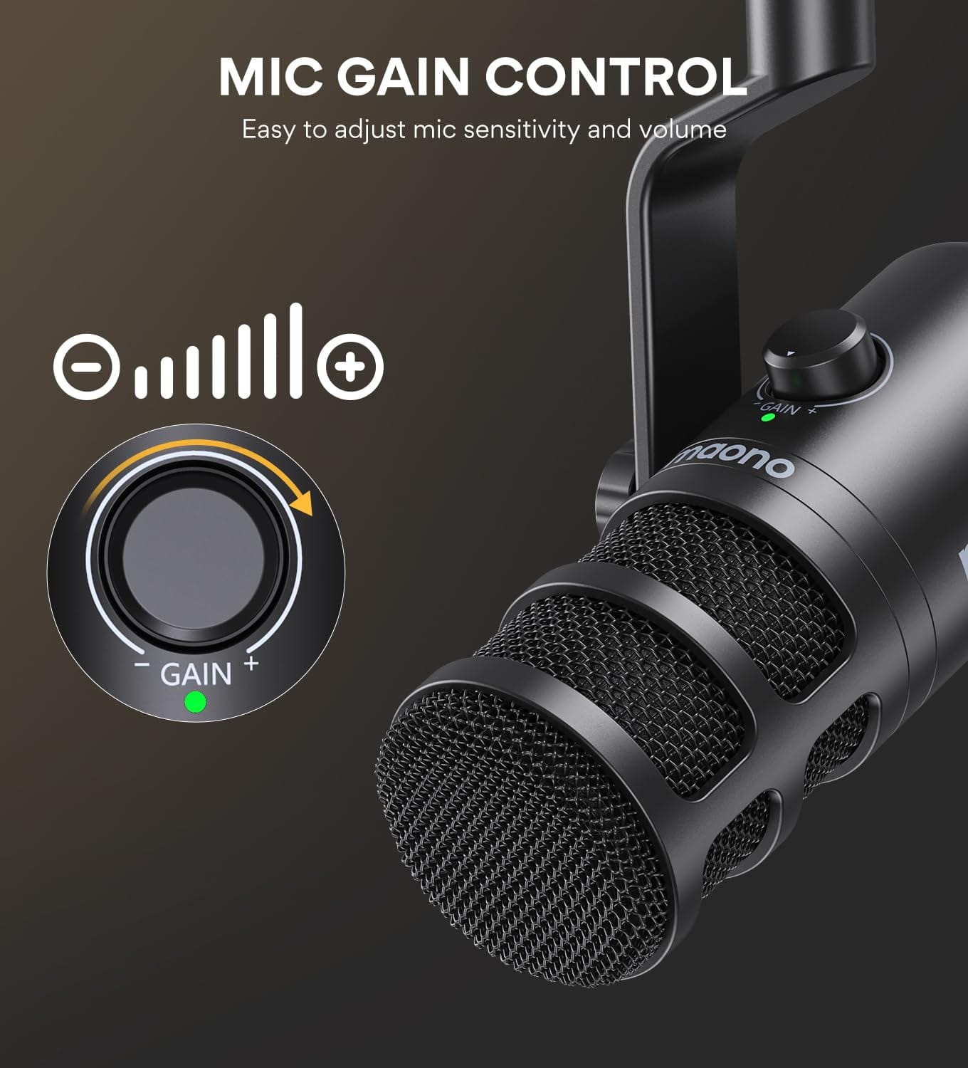 - The convenient mic gain knob allows easy volume adjustments, letting you find the perfect sound level without needing to reposition the microphone frequently. This ensures a hassle-free recording experience.