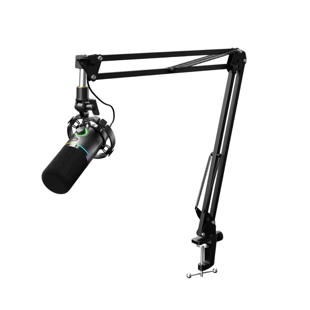- Crafted from high-quality metal, the microphone is built to last. The included boom arm offers easy adjustment and stable mounting, giving users complete control over mic positioning. Its sleek design fits right into any studio or creative workspace.