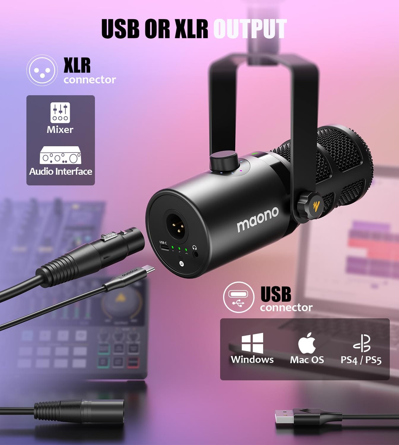 - The MAONO PD400X USB/XLR Dynamic Microphone is the ultimate audio solution for content creators, podcasters, and musicians. Designed with versatility and precision, this microphone ensures exceptional audio quality, whether for studio recordings or live streaming.