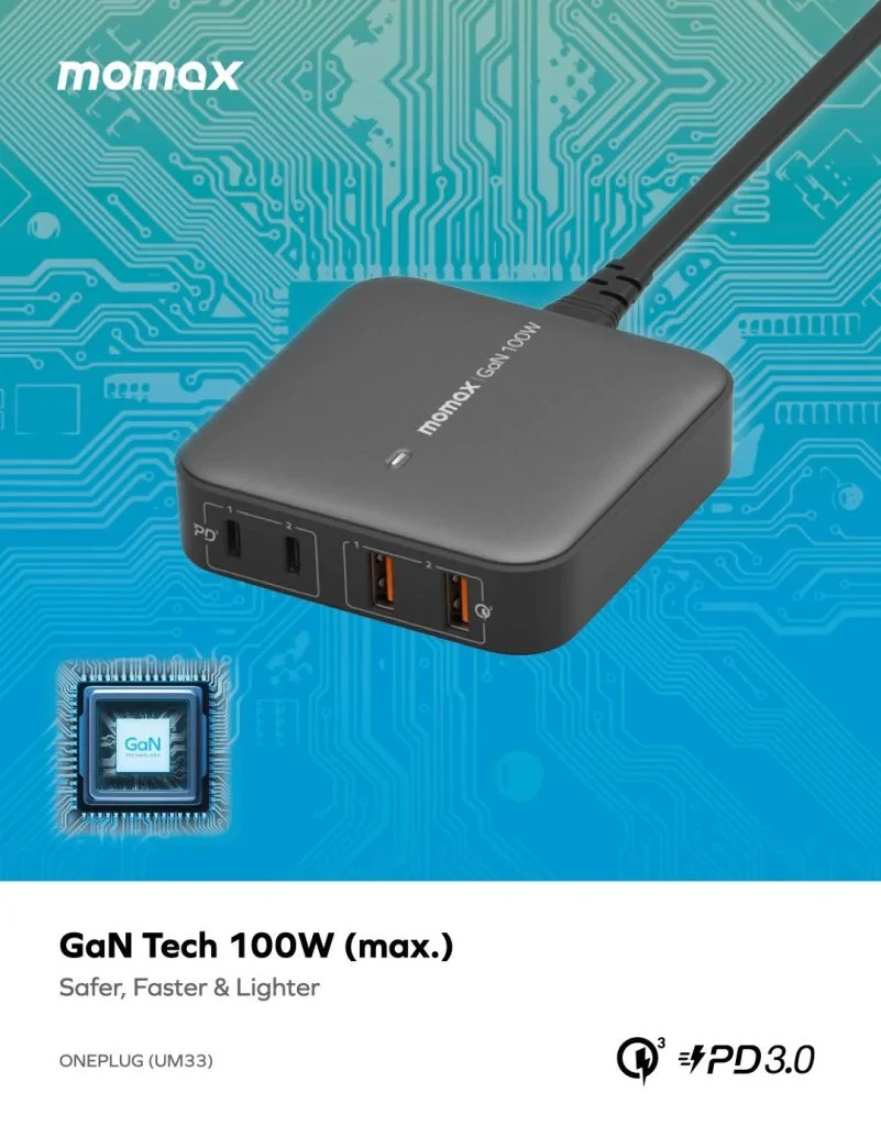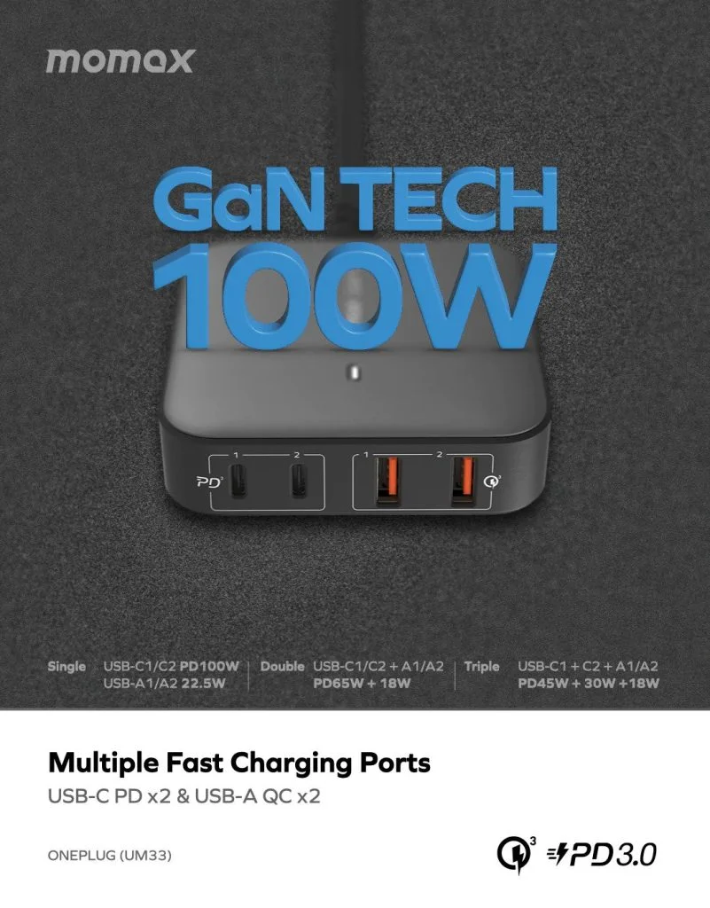 Momax UM33 ONEPLUG 100W 4-Port GaN Desktop Charger: