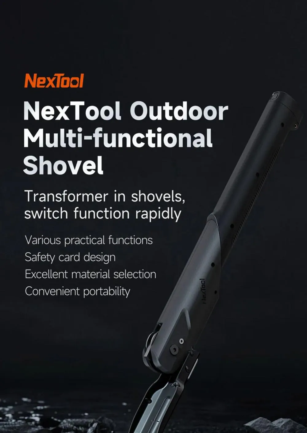 - The NexTool Outdoor Multi-functional Shovel 7 in 1 Multitool designed to be a must-have tool for any outdoor enthusiast. Whether you’re camping, hiking, or backpacking, this versatile tool offers seven essential functions in one compact package. It combines a heavy-duty shovel, sharp axe blade, serrated saw, hammer, rescue knife, fire starter (magnesium rod), and hoe. Because it’s constructed from durable materials like 30Cr13 for both the shovel and axe, it is built to withstand tough conditions, making it a reliable companion in any survival situation.