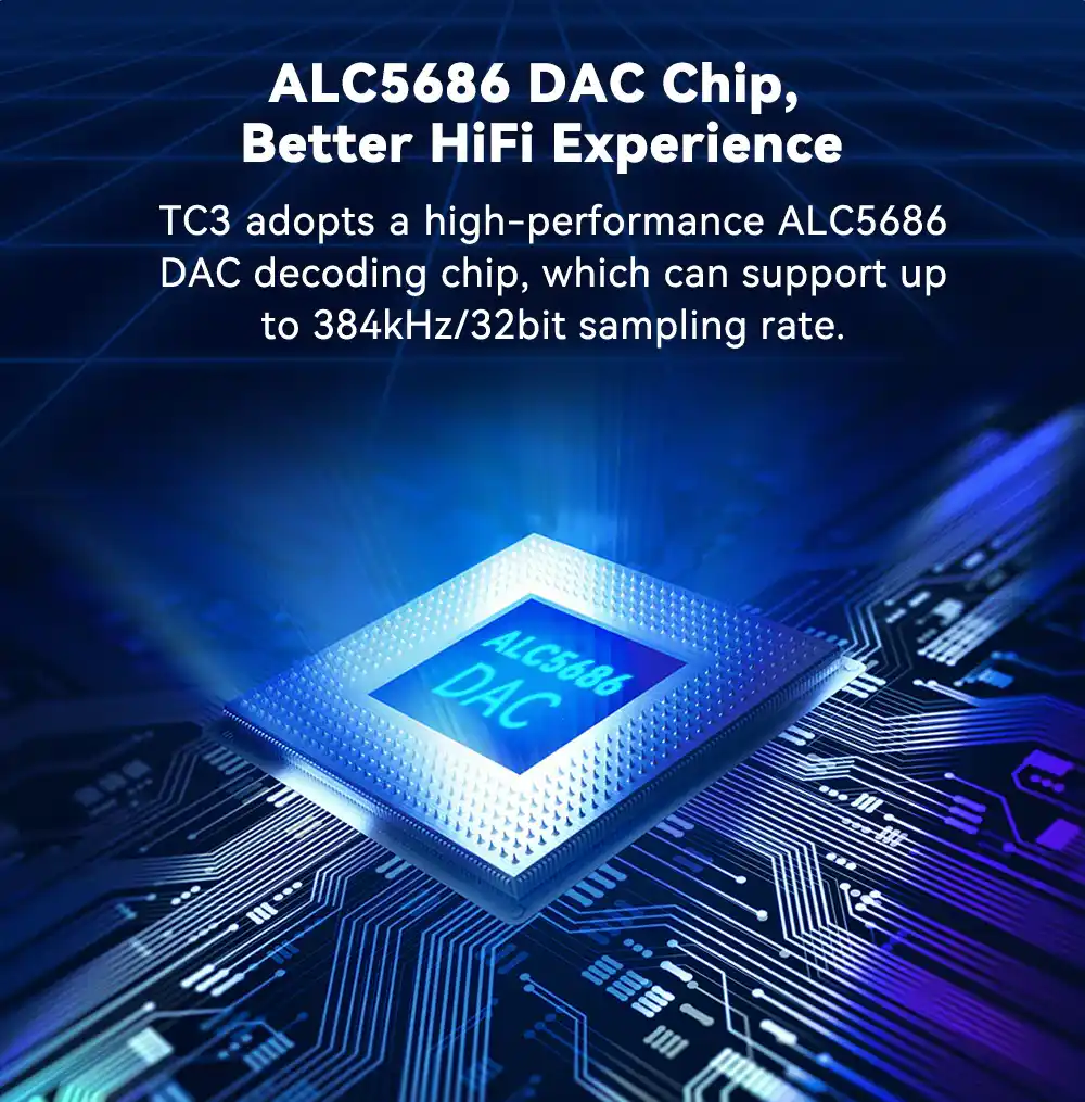- Equipped with high-fidelity audio processing, the TC3 captures every detail of your music. Its advanced DAC technology delivers crystal-clear sound, enhancing your listening experience to a professional-grade level. The device also supports high-resolution audio formats, allowing you to enjoy a full range of sound without any compromise.