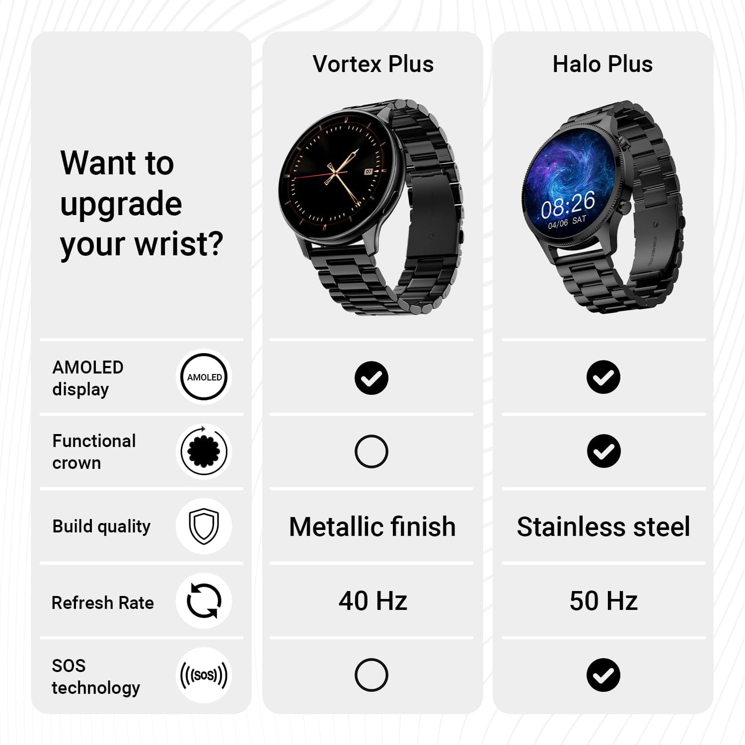 - The Noise NoiseFit Vortex Plus is the ultimate smartwatch for those seeking innovation, style, and functionality. It features a stunning 1.46-inch (3.7 cm) AMOLED display with a crisp 466×466 pixel resolution, ensuring vibrant visuals and an immersive experience. The always-on display adds convenience, keeping you updated at a glance.
