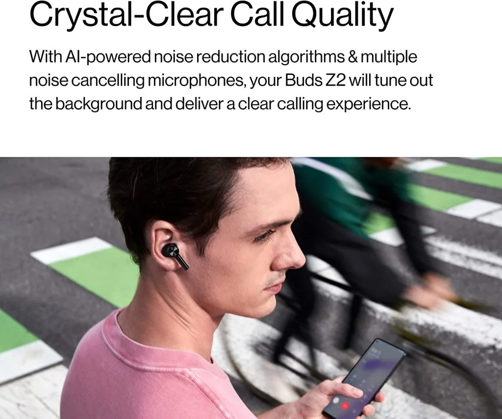 - Enhanced Noise Cancellation:The OnePlus Buds Z2 boast a significant upgrade in noise cancellation. Equipped with three microphones, they actively reduce unwanted ambient sounds, allowing you to focus on your music, calls, or audiobooks. Additionally, the improved design minimizes wind noise, ensuring a clear and immersive listening experience even outdoors.