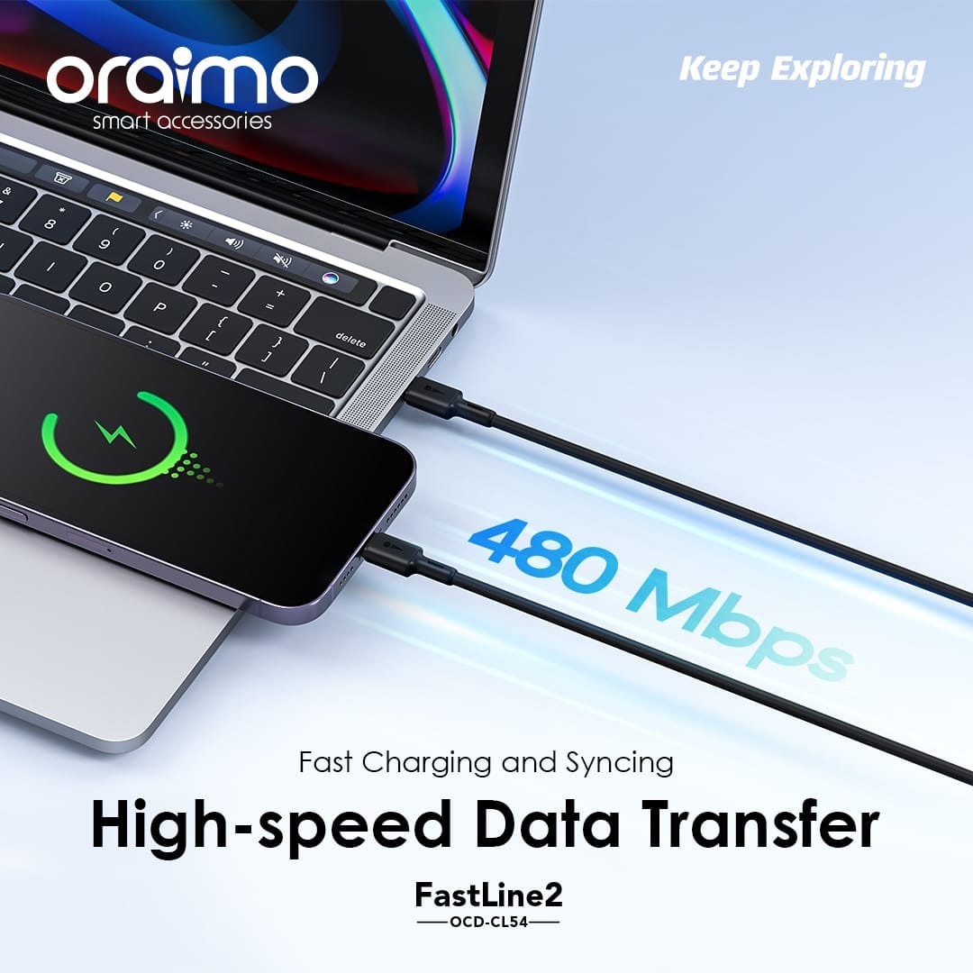 Blazing Fast Charging and Data Transfer: Experience rapid charging with the Oraimo FastLine 2. Its superior copper-varnished cable core ensures efficient power delivery, supporting up to 2.4A charging speed. Additionally, enjoy lightning-fast data transfer rates of up to 480 Mbps, allowing you to seamlessly sync your iPhone or iPad with your computer.