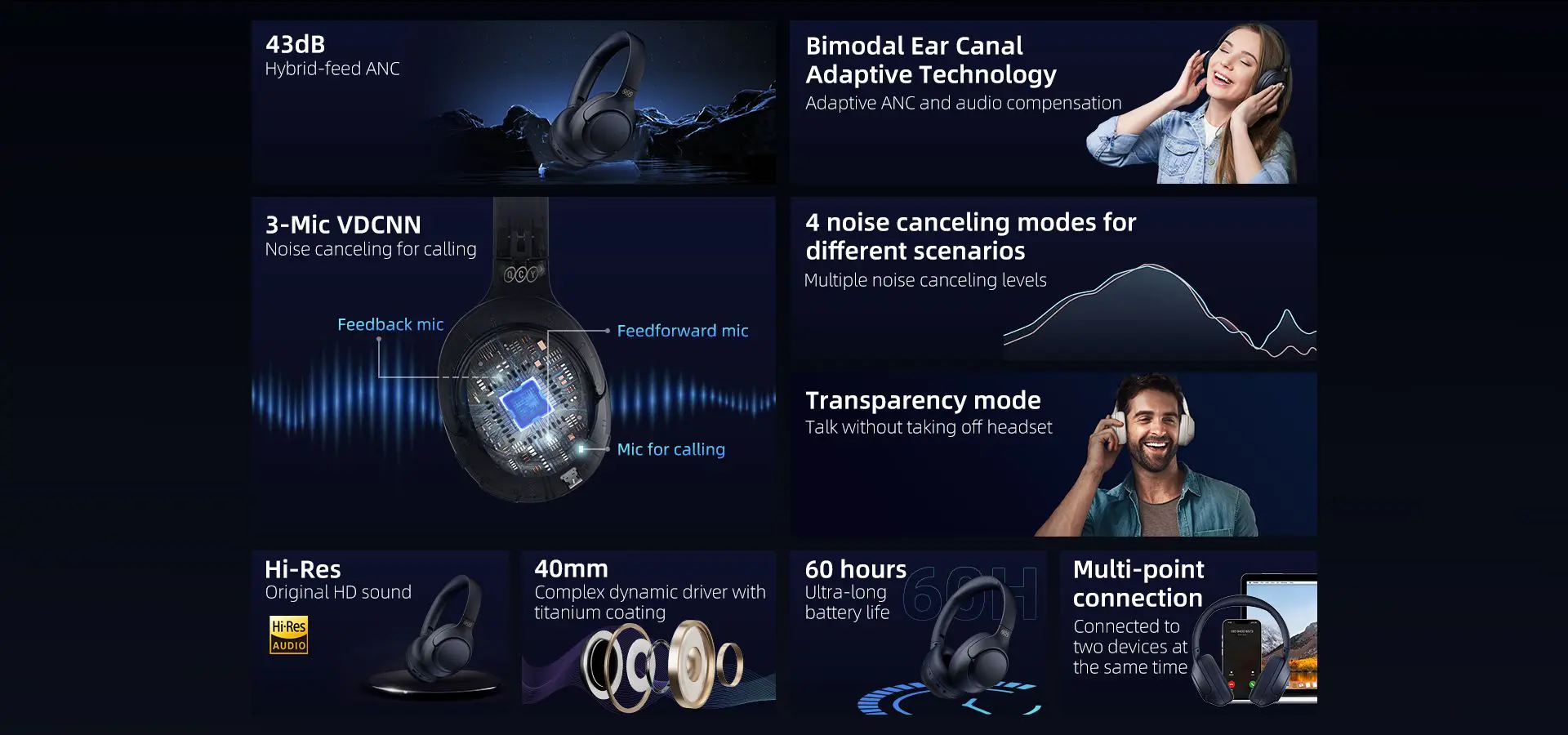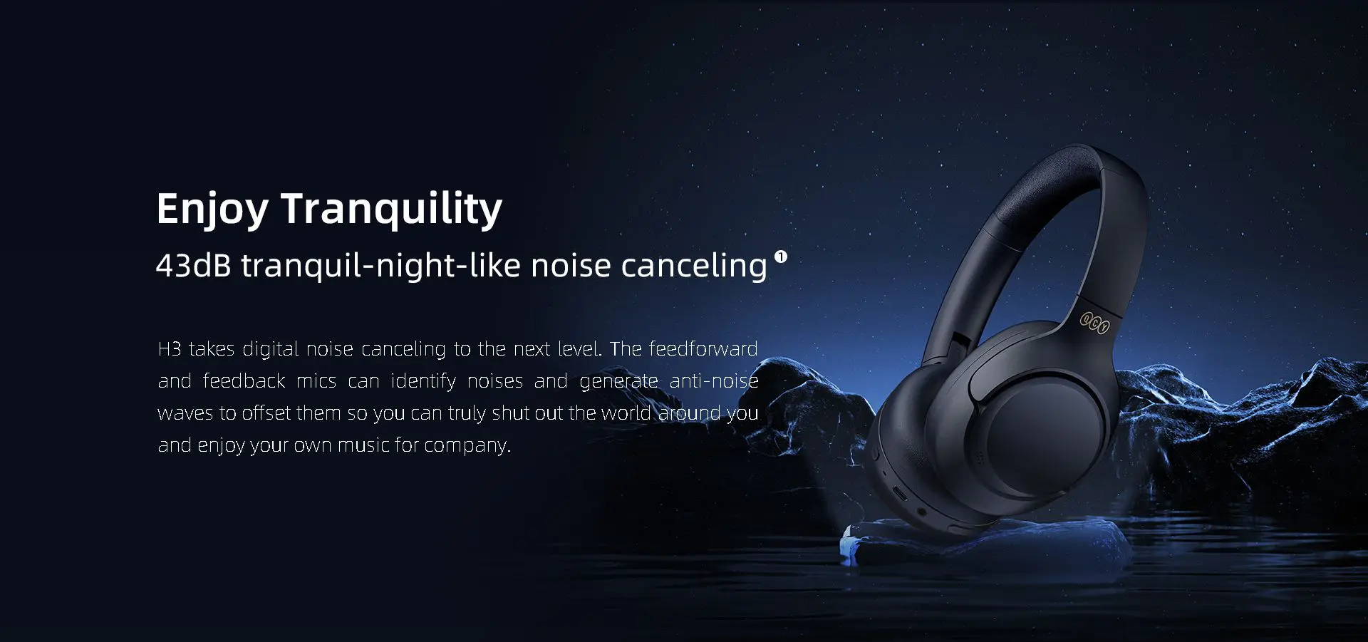 - Introducing the QCY H3 43dB Hybrid ANC Wireless Headphones, designed to revolutionize your audio experience. With hybrid active noise cancellation (ANC) technology, these headphones use five microphones to block noise up to 43dB, and they offer four adjustable settings for various noisy situations. Moreover, the Bimodal Ear Canal Adaptive Audio Compensation (BECAAC) ensures premium listening for different users by adapting noise-canceling parameters based on ear-canal structure. Although you must turn on this feature manually each time, it significantly enhances the audio experience.