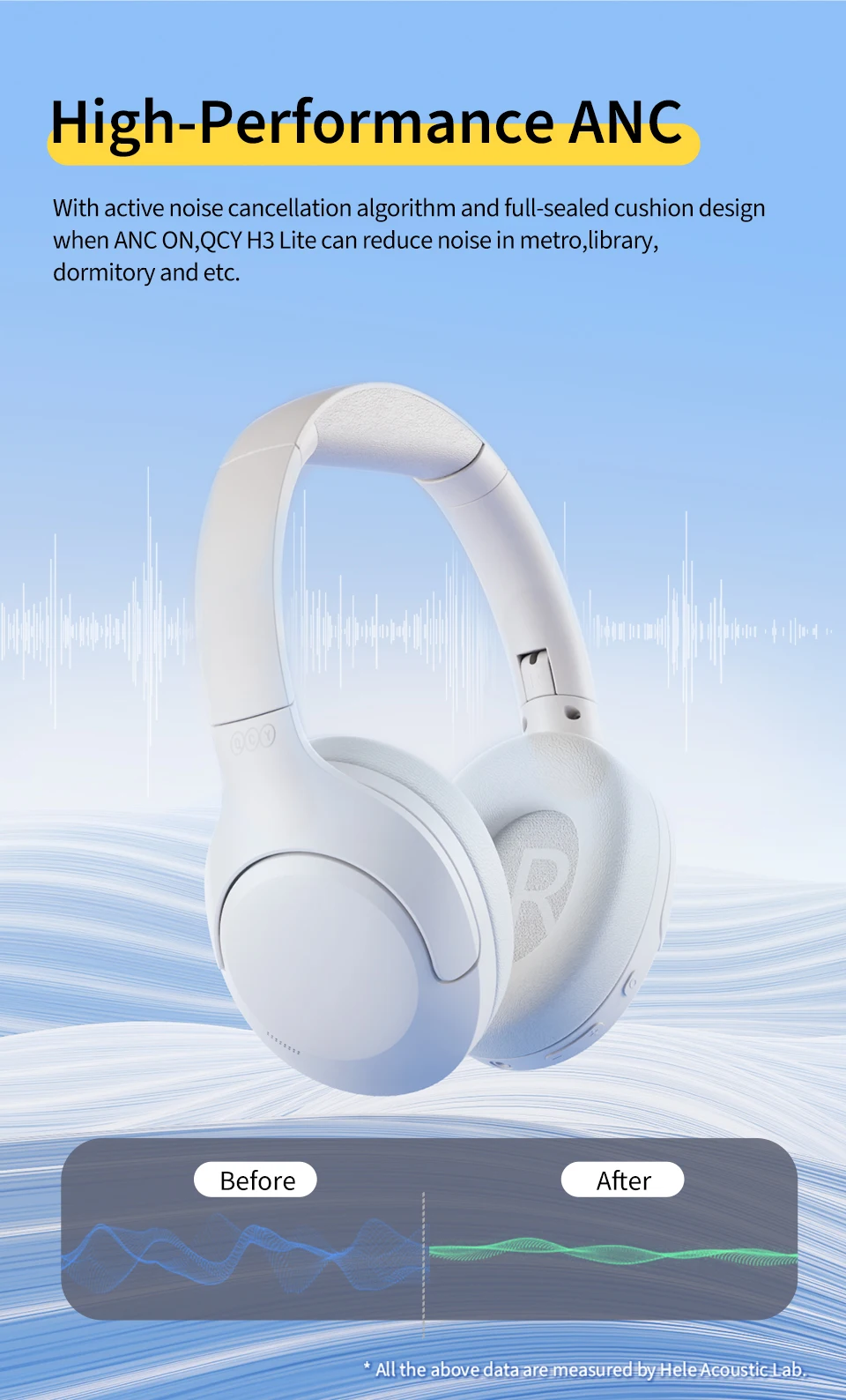 - The QCY H3 LiteANC Wireless Headphone is designed to deliver an exceptional audio experience. Firstly, the Active Noise Cancellation (ANC) and Transparency Mode provide a versatile listening experience. Active noise cancelling effectively blocks out 90% of external noise, allowing you to immerse yourself in superior sound quality. Moreover, the transparency mode lets you hear ambient sounds without needing to remove the headphones, which is perfect for staying aware of your surroundings while listening to music.