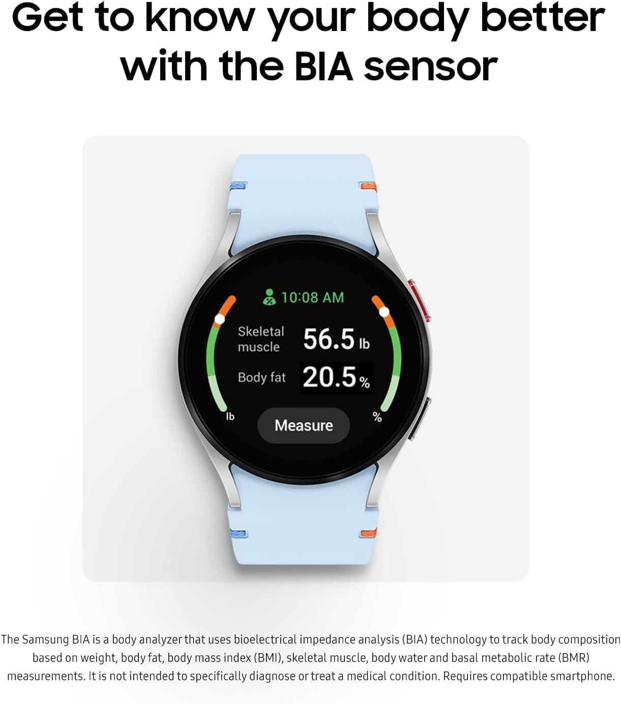 - With its advanced BIA sensor, the Galaxy Watch FE offers insights into your body composition, including body fat, muscle mass, and water levels. These data points empower you to achieve goals like muscle building or improving hydration levels.