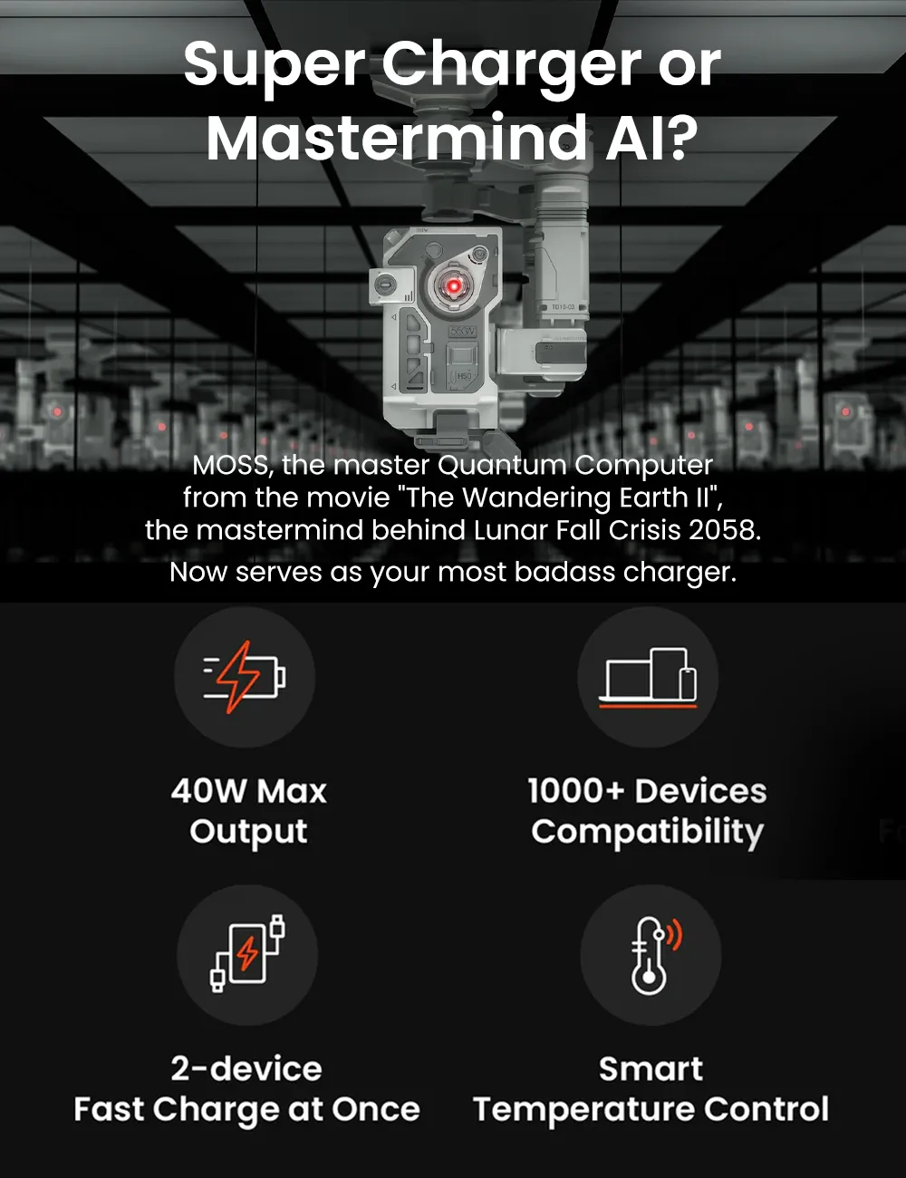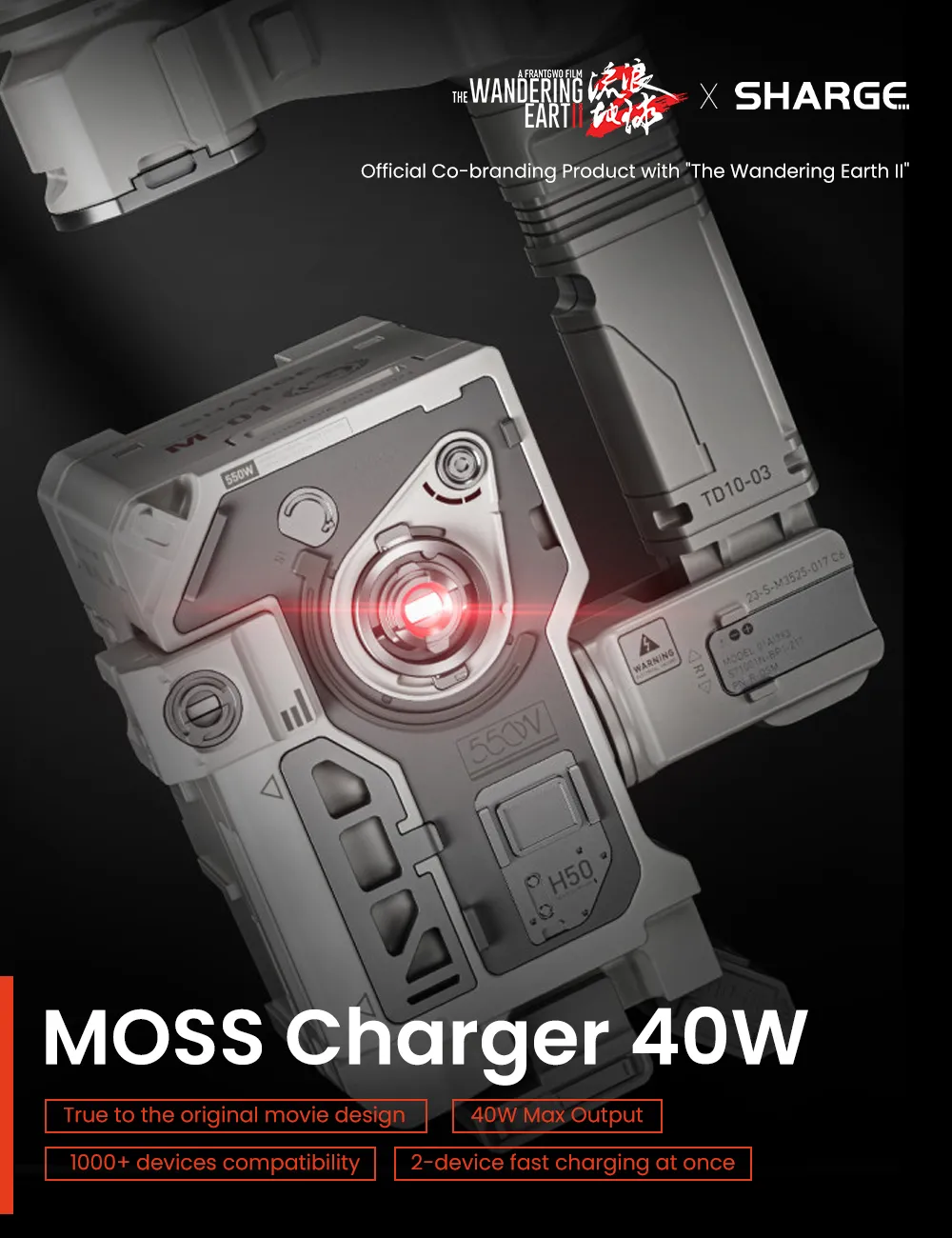 - The Sharge MOSS Charger is more than just a charging device; it’s a stylish and efficient power solution for your modern lifestyle. Inspired by iconic movie designs, the MOSS charger is a standout piece that complements your tech setup.