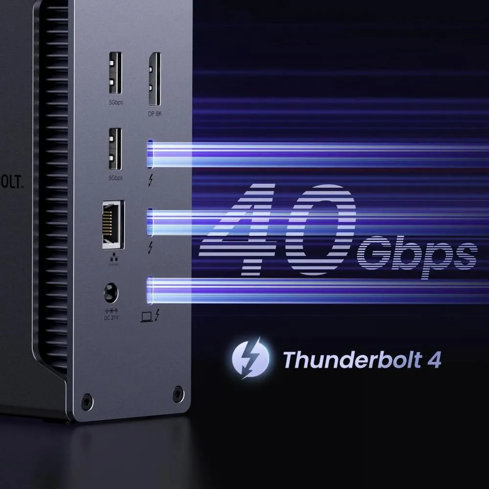 - The UGREEN 13-in-1 RevodokMax 213 Docking Station (U7101) offers a powerful solution for those who need extensive connectivity. With 13 ports, it provides a massive expansion for various high-performance devices, making it perfect for professionals and tech enthusiasts alike. Moreover, this docking station equipped with Thunderbolt 4, which ensures ultra-fast 40Gbps data transfer speeds. Additionally, this feature allows you to connect a display with resolutions up to 8K, providing crystal-clear visuals for an immersive experience.