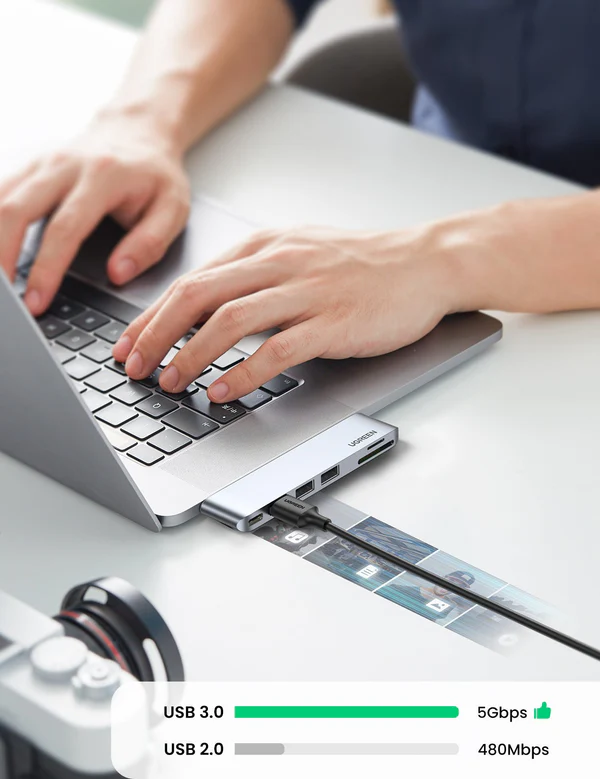 - Specially crafted for MacBook Air (2018/2019/2020) and MacBook Pro (2016–2020), the UGREEN USB C hub connects seamlessly to your device, offering both functionality and style. With two USB 3.0 ports, you can transfer files at blazing speeds of up to 5Gbps, ensuring fast and efficient data exchange. It also supports multiple peripherals, including external hard drives, keyboards, and mice, while maintaining compatibility with USB 2.0 devices.