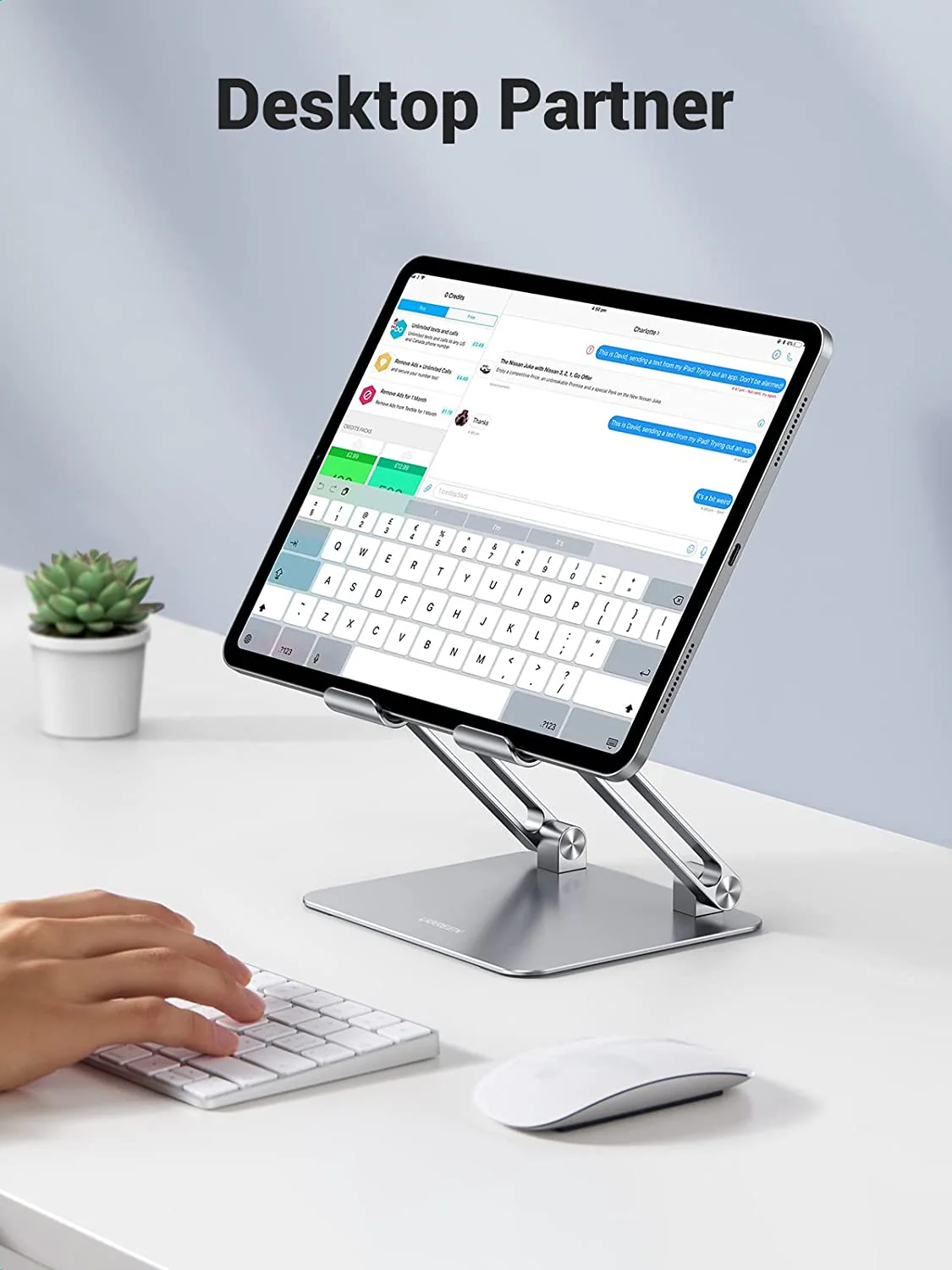- For those who use their tablets intensively, the stand’s hollow base design is an added bonus, helping to dissipate heat and keep devices cool. In this way, the UGREEN 90396 Adjustable Folding Portable Desktop Tablet Holder is not only a practical tool but also a thoughtful one, combining stability, protection, and functionality to enhance any workspace or entertainment setup.