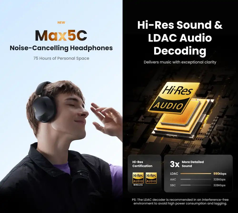 - At GearsWheel, we bring you the authentic UGREENHP203 HiTune Max5c ANC Bluetooth Headphones, ensuring quality and value in every purchase. Upgrade your audio experience today with these versatile and stylish headphones.