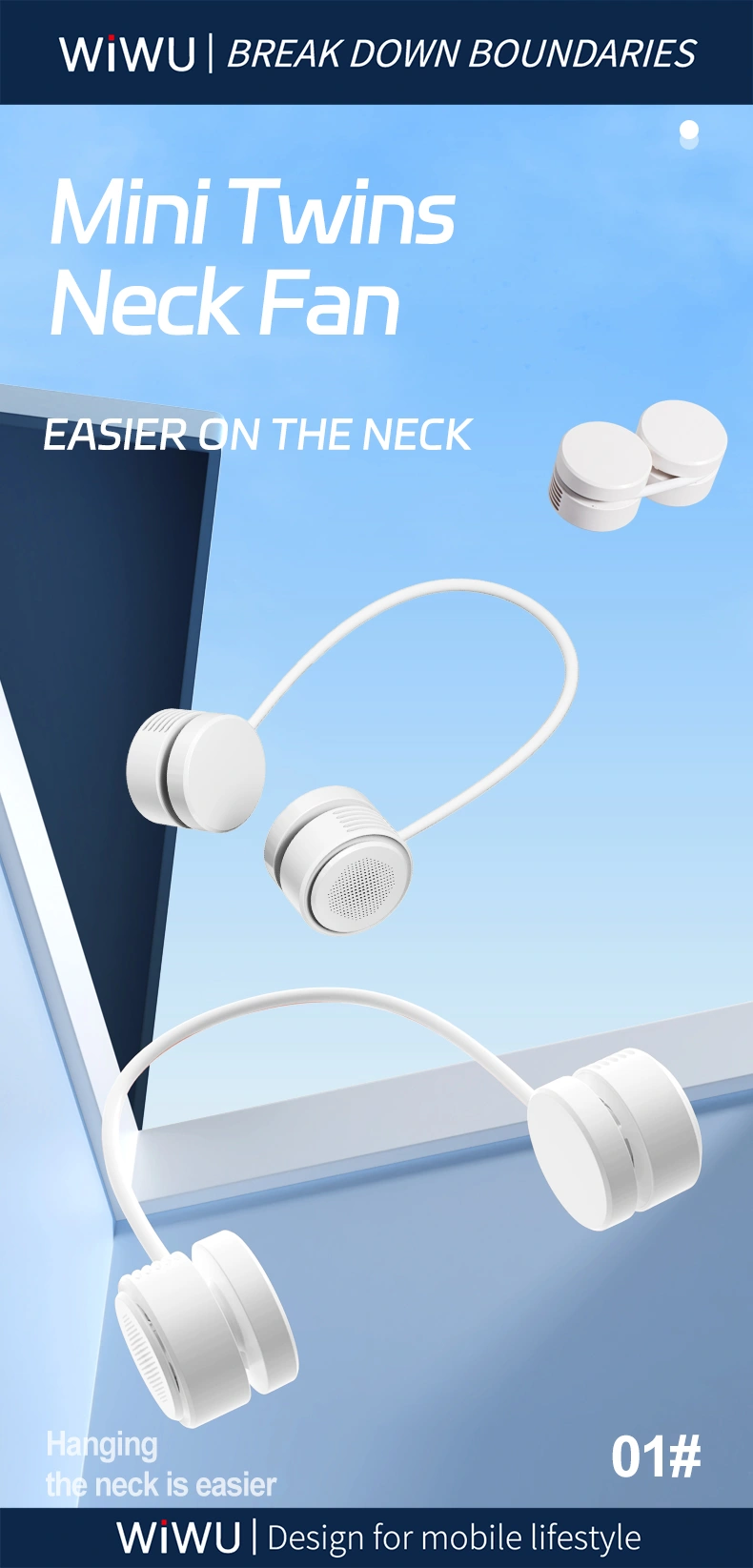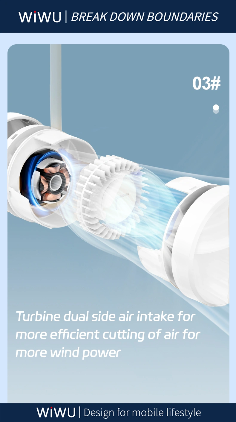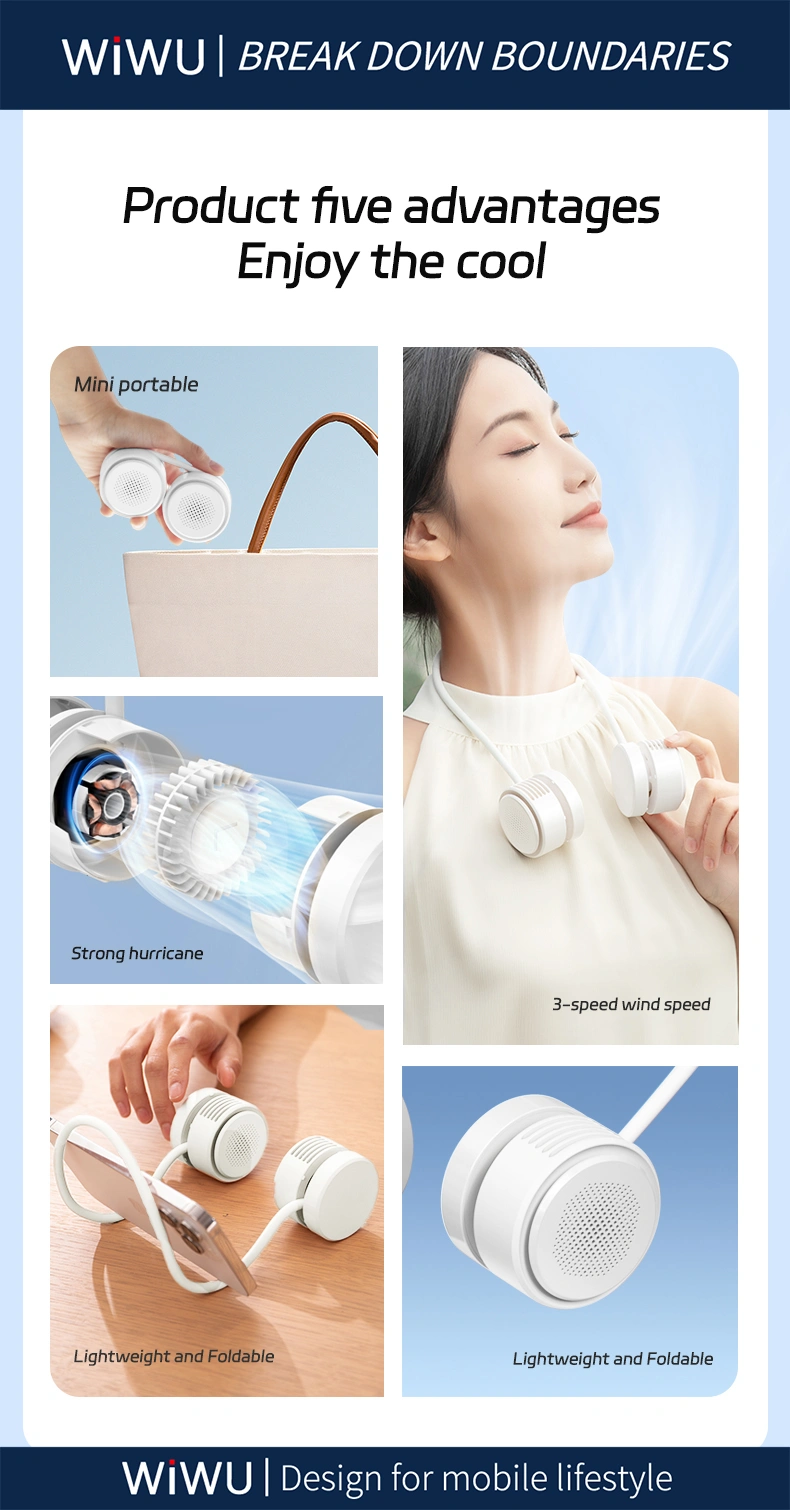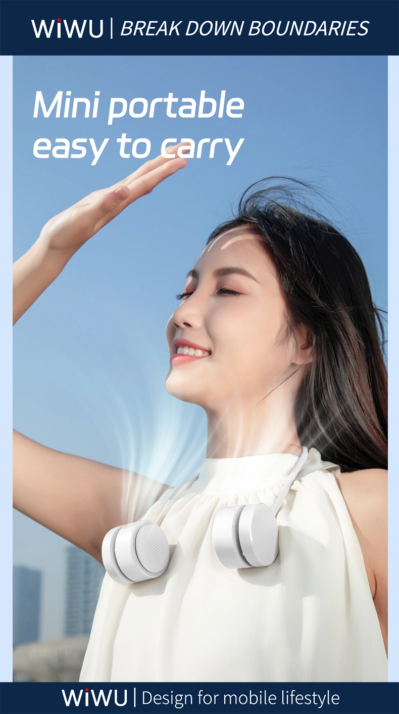 - Stay refreshed anytime, anywhere with the WiWU Wi-FS014 FlexiTwins NeckFan. Designed for those constantly on the move, this innovative dual-head fan combines comfort, portability, and power. Whether you’re commuting, exercising, traveling, or simply relaxing, this neck fan ensures hands-free cooling with style.